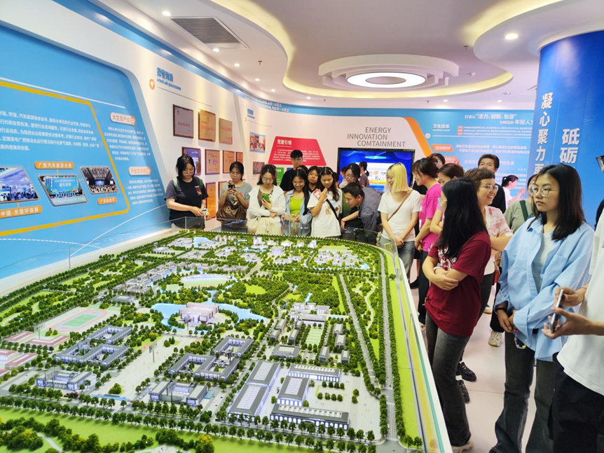 在广西现代物流集团规划展示馆,通过讲解员的介绍和集团宣传片,同学们了解了集团的发展历程、组织架构和av片,对其在物流、环保、机电、职业教育等多领域的实力与影响力有了直观认识。