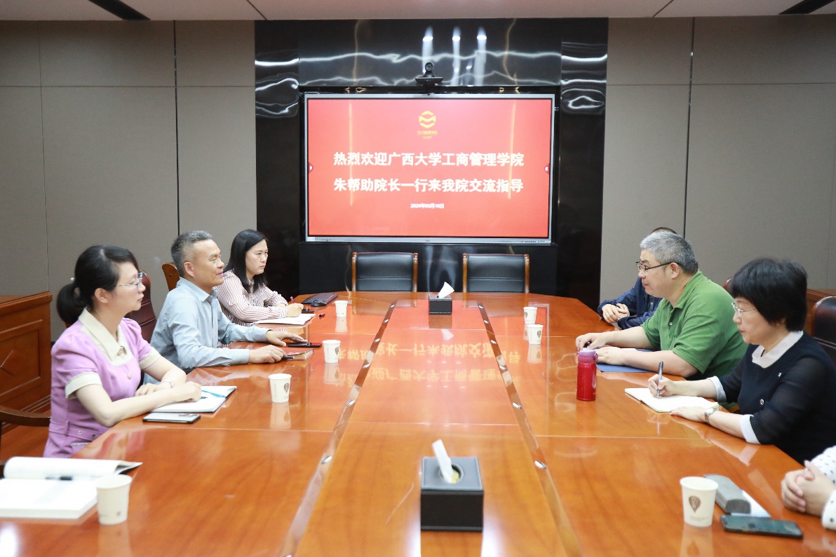 院长朱帮助、副院长廖东红一行5人赴中国矿业大学经济管理学院调研。中国矿业大学经济管理学院院长丁志华、副院长江红艳、办公室主任肖国建等5人参加座谈。
