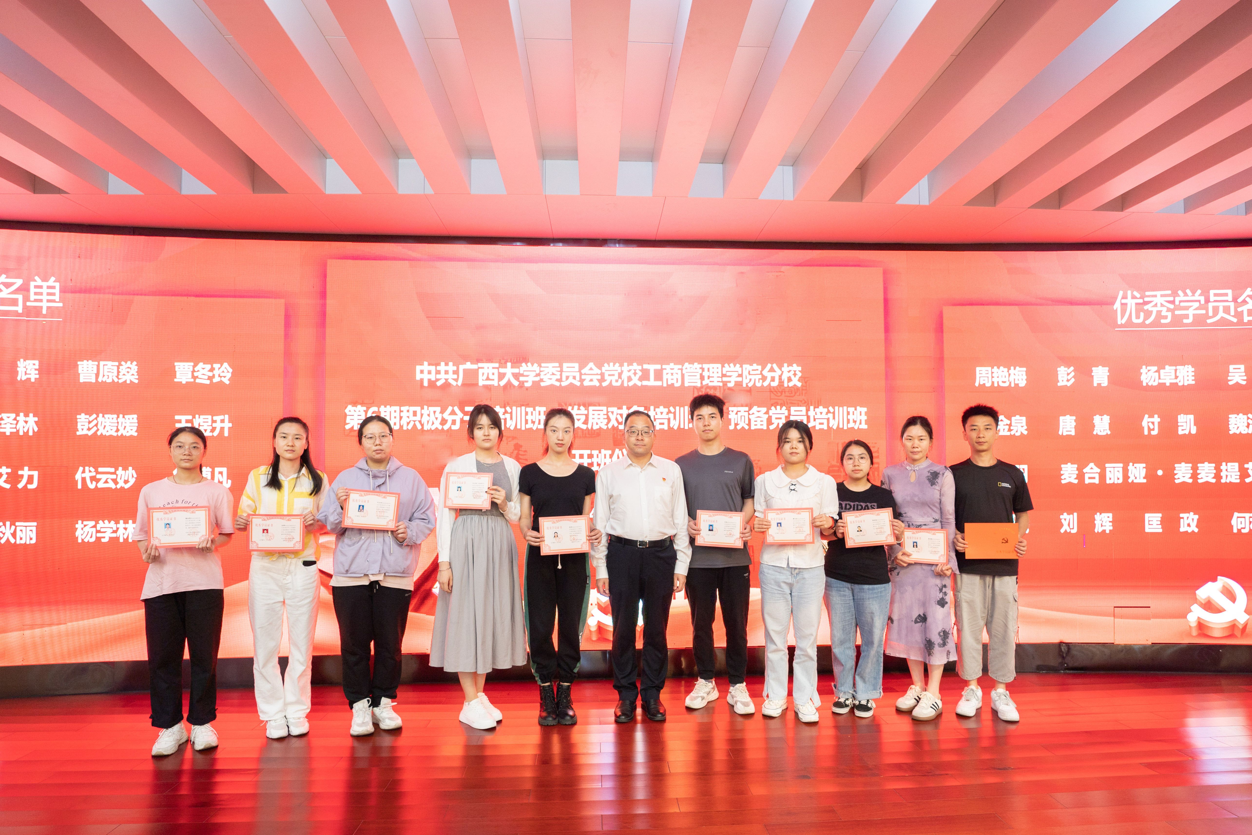 开班仪式上,罗诚书记为上一届培训班的优秀学员代表颁发荣誉证书,表彰他们在第五期党校班学习的优异表现,鼓励本期学员们以他们为榜样,学深悟透党的理论知识,积极向党组织靠拢。