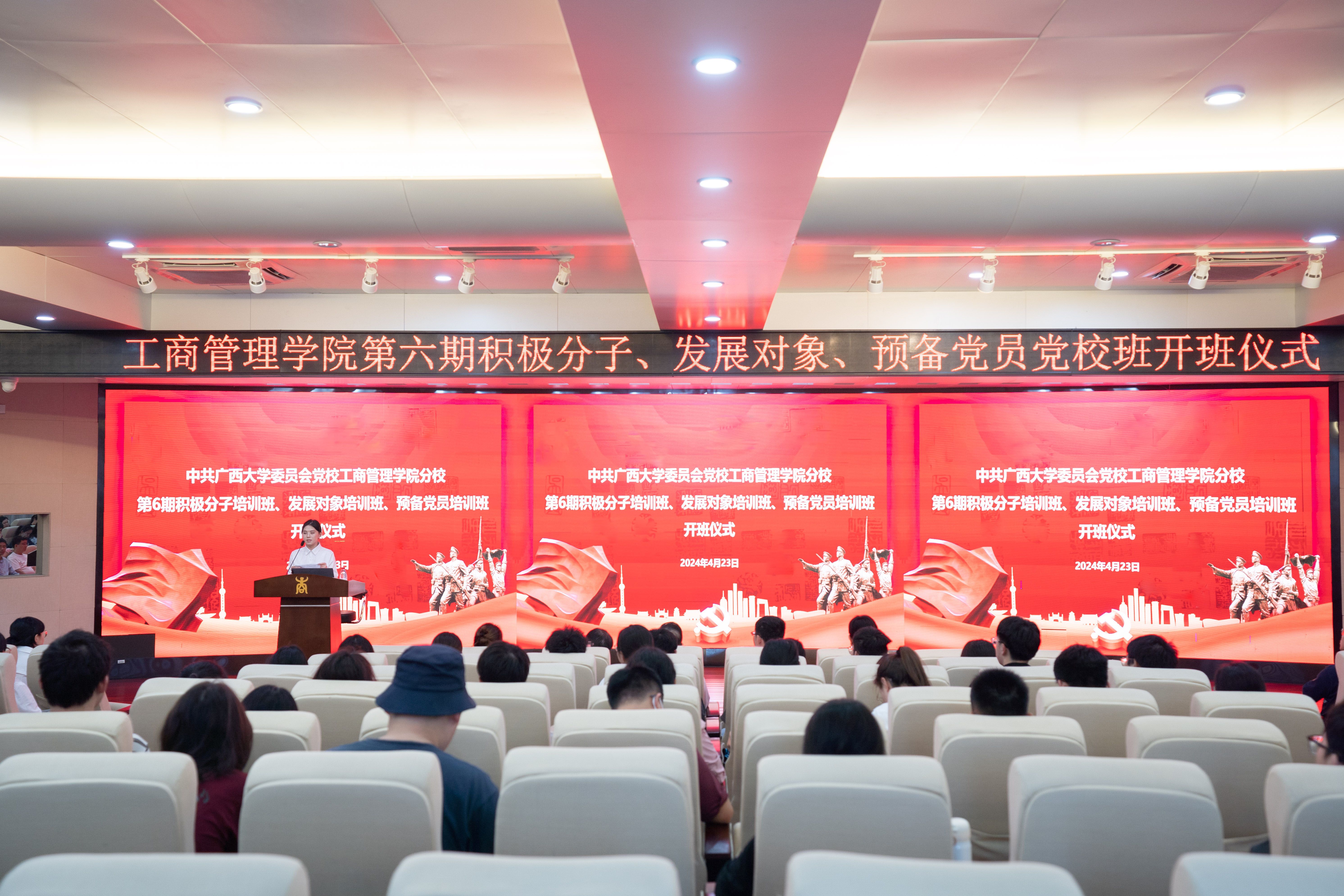 分党校第六期党校班开班仪式在学院128报告厅举行。学院党委书记罗诚、党委副书记肖克宁出席开班仪式,组织员黄照温、辅导员王乐、郁文丹以及来自入党积极分子党校班、发展对象党校班和预备党员党校班的学员代表共同参加了开班仪式。
