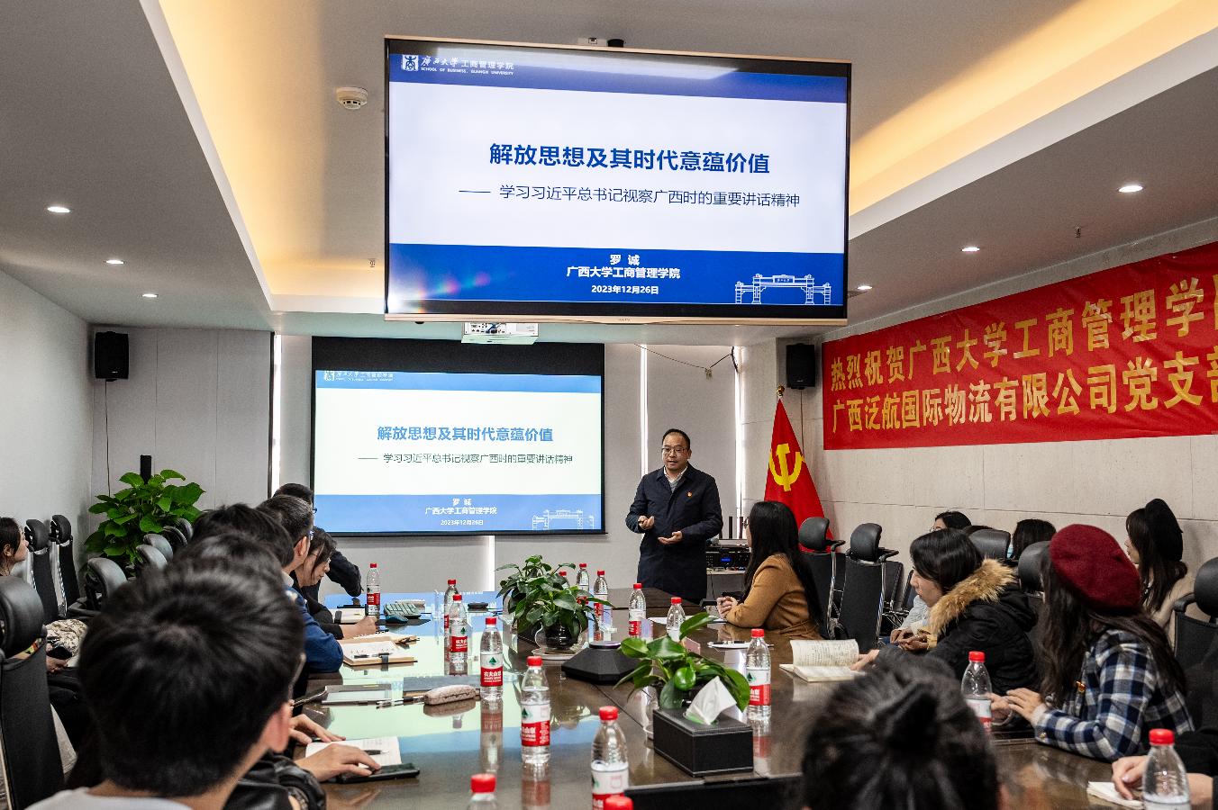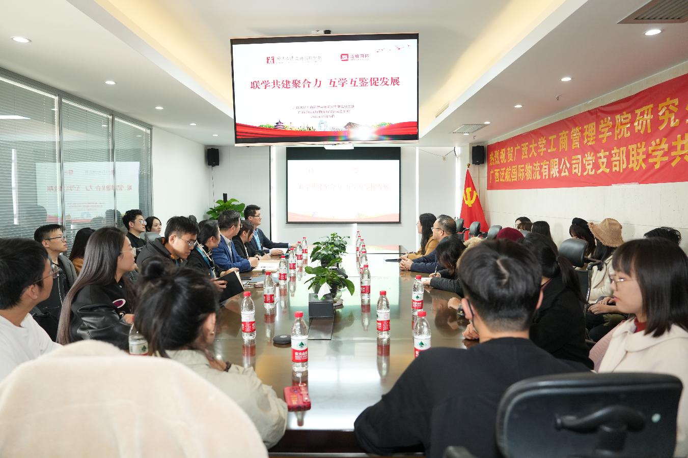 研究生第五党支部赴广西泛航国际物流有限公司(以下简称“泛航公司”),探访民营企业发展环境,了解现代民企发展现状及趋势,并与该公司党支部开展联学共建活动。学院党委书记罗诚,泛航公司党支部书记、董事长、av片