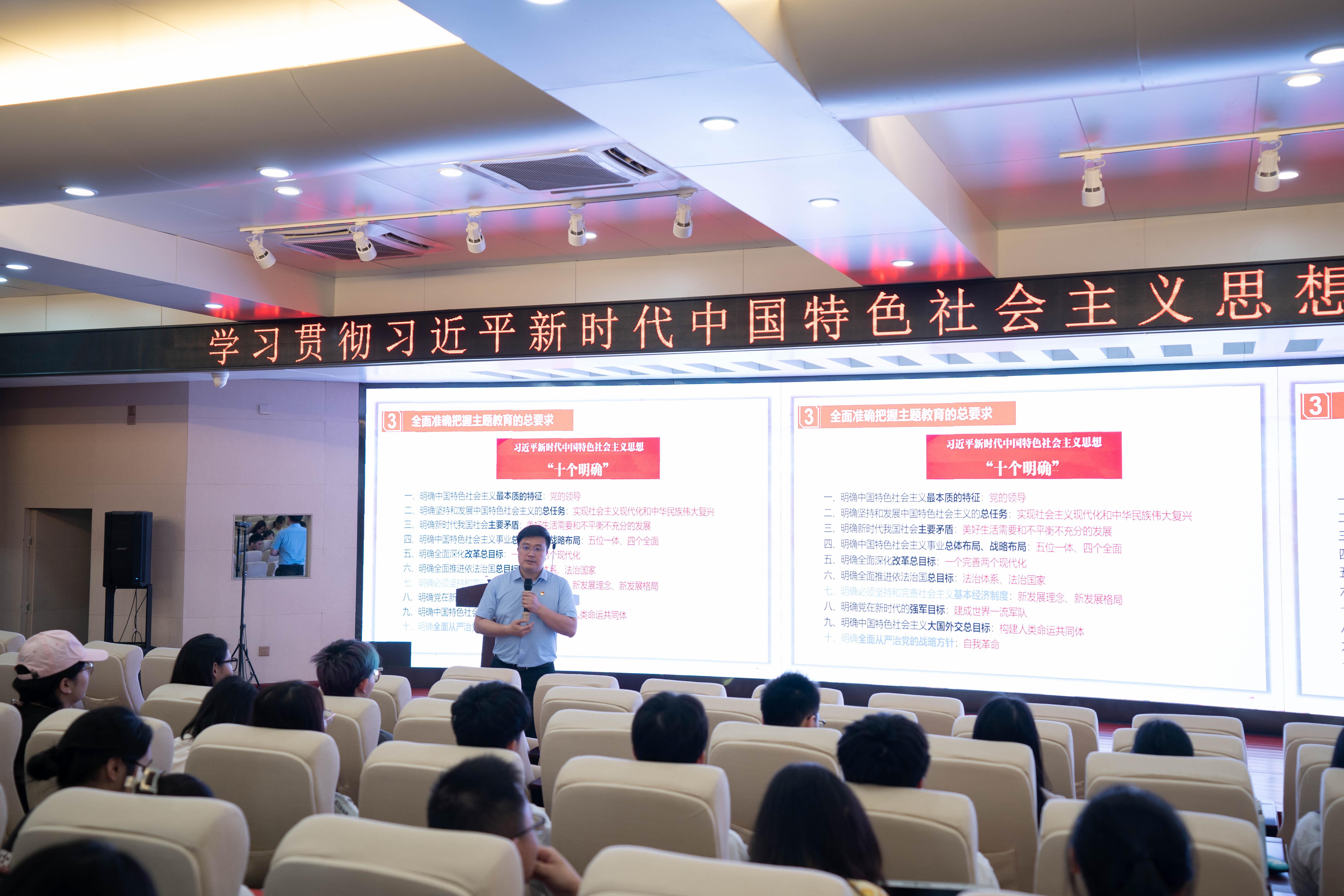 学院党委副书记黄晋以《学习贯彻习近平新时代中国特色社会主义思想,争当中华民族复兴大任的时代新人》为题,在学院128报告厅为研究生第二党支部、本科生第二、第五党支部讲授专题党课。他通过举实例,与同学们互动的方式,带领同学们系统理解了如何牢牢把握主题教育“学思想、强党性、重实践、建新功”的总要求,并勉励大家要“敢想敢为又善作善成”。