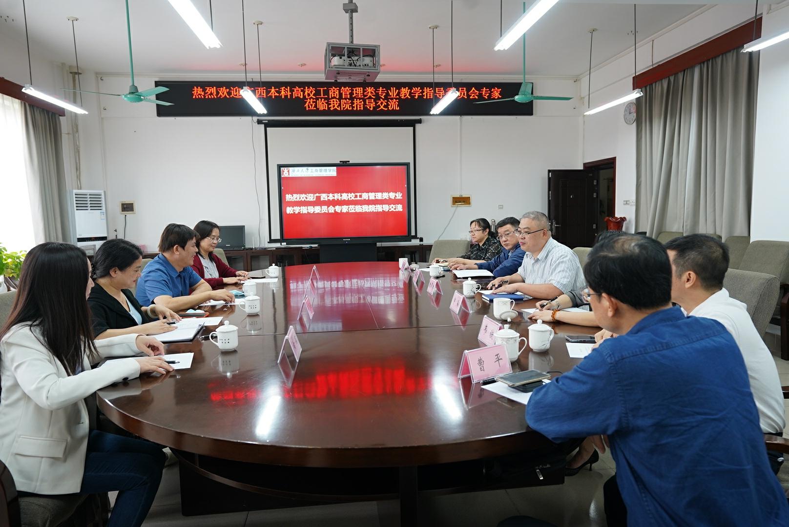 副院长申韬,院长助理、商务信息系主任、实验中心主任蒋侃,企业管理系主任韦铁,旅游管理系主任郭峦,广西本科高校工商管理类专业教学指导委员会委员、企业管理系教授曹平、党政办主任杨阳陪同。
