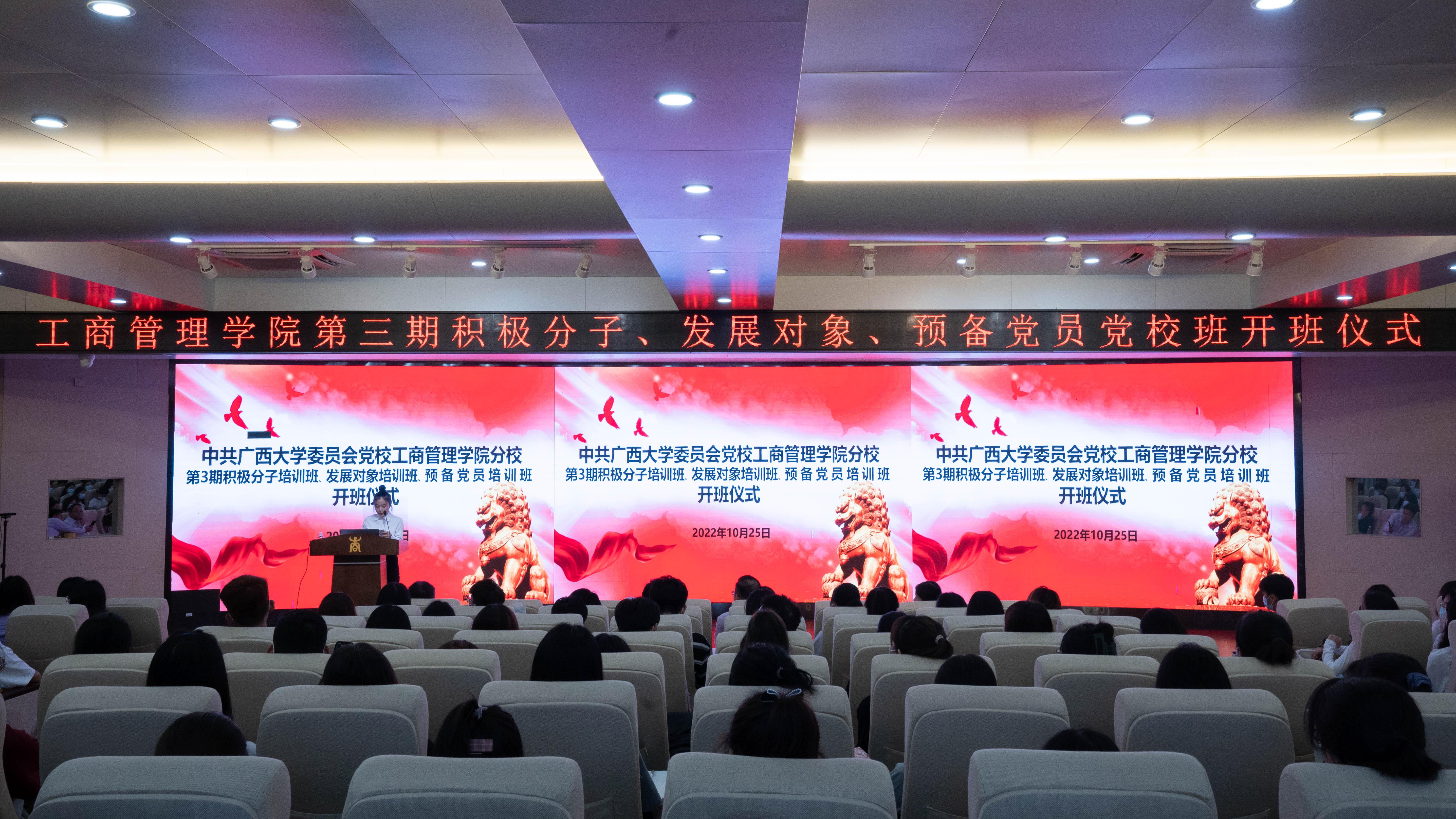 分党校第三期党校班开班仪式在学院128报告厅举行。学院党委书记罗诚、党委副书记黄晋出席开班仪式,团委副书记岑汉成、辅导员冯莎莎以及来自入党积极分子党校班、发展对象党校班和预备党员党校班的学员代表共同参加了开班仪式。