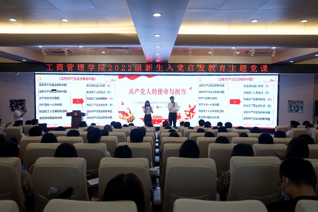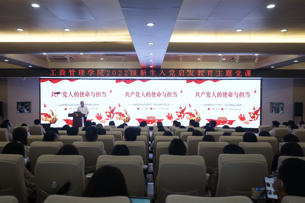 党委组织2022级全体新生分两场在学院128报告厅开展入党启发教育主题党课。学院党委书记罗诚以《共产党人的使命与担当》为题,结合自身成长经历,向同学们展示了何为一名合格的共产党员。院党委副书记黄晋、组织员黄照温、团委书记马丽娟、团委副书记岑汉成一同参与学习。