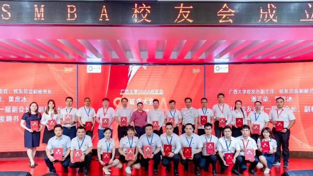 SMBA校友会第一届会长;唐培文当选执行会长;蒋冠平、肖红飞、郑金水等12人当选常务副会长;孙风利(兼)当选秘书长;大会选举王全等25人为副会长;大会选举龙慧娴等5人为副秘书长。学校领导、学院领导分别为第一届会长机构和秘书长机构成员颁发了聘书。