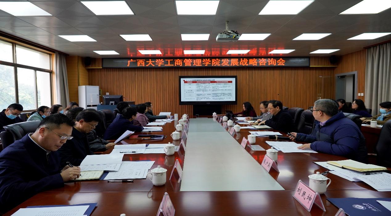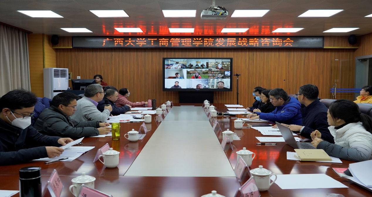 在学院315会议室以线上和线下的形式召开学院发展战略研讨会。南京大学工程管理学院名誉院长、原东南大学副校长盛昭瀚,首都经济贸易大学副校长王永贵教授,北京理工大学管理与经济学院院长王兆华教授,南开大学商学院原院长张玉利,中山大学管理学院原书记谭劲松,北京师范大学教授陈彬,中山大学旅游学院教授张朝枝等专家领导应邀在线上指导;广西壮族自治区政府发展研究中心党组书记、主任杨丛,百色学院党委书记唐拥军,广西教育学院党委书记、院长袁旭,广西电力职业技术学院校长李向红,广西财经学院副校长夏国恩,广西壮族自治区教育厅科研管理处处长黄青云,av片