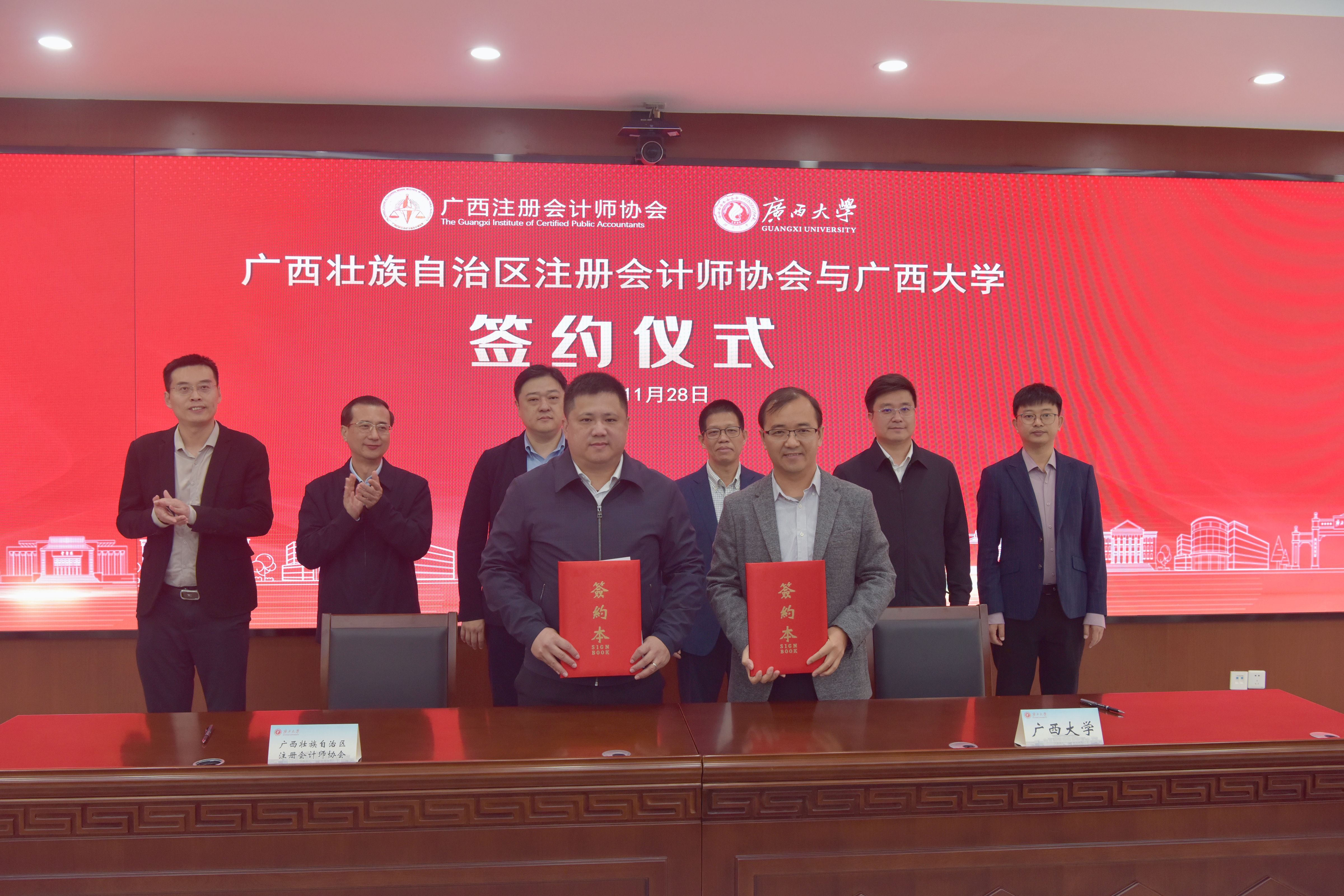 11月28日,我校与广西壮族自治区注册会计师协会举行产学研教育基地签约仪式暨座谈会。中国注册会计师行业党委委员,中国注册会计师行业协会党委委员、副秘书长万文翔;中国注册会计师行业党委委员,广西壮族自治区财政厅党组成员、副厅长陈海涛;av片