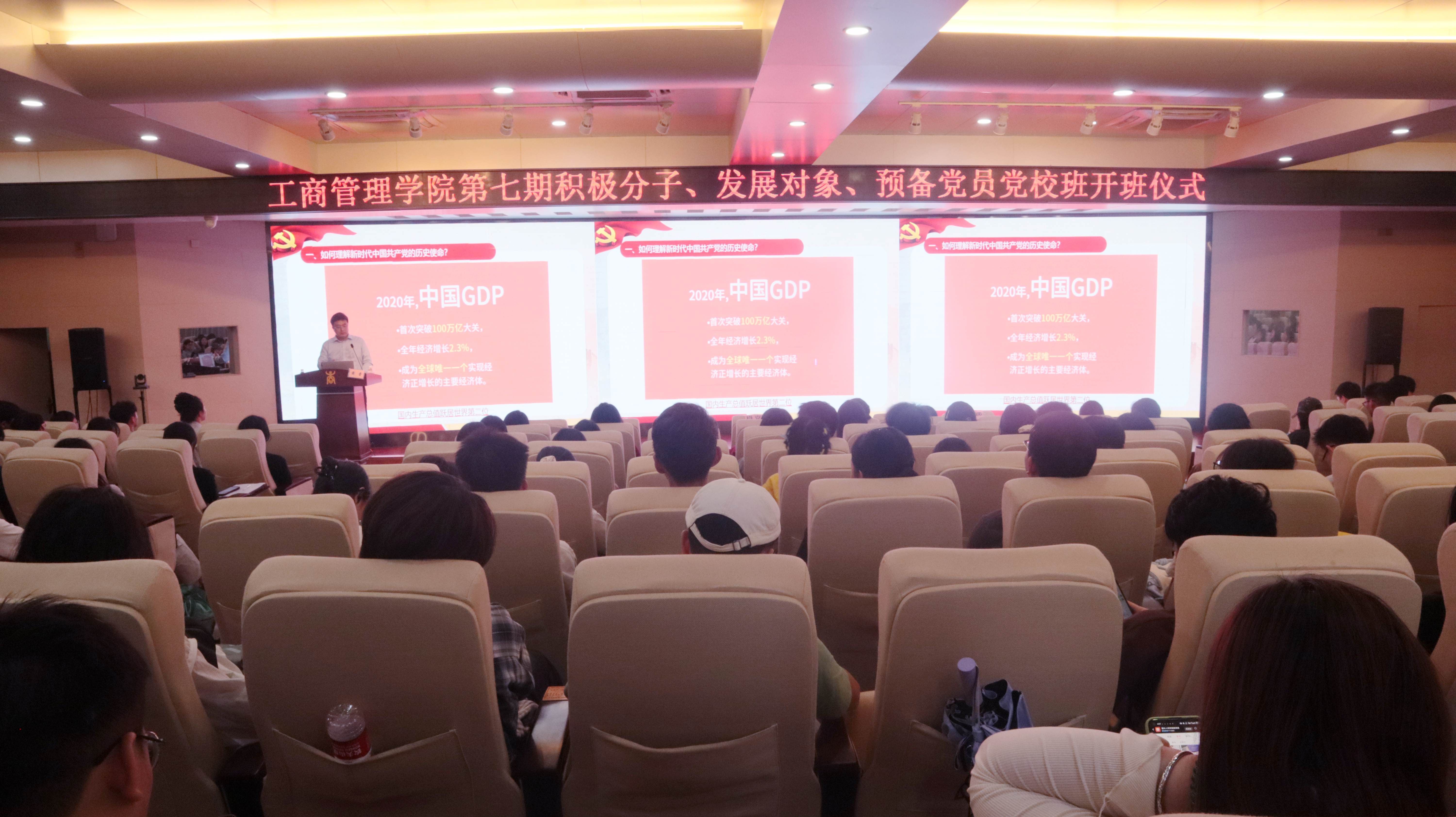 分党校第七期党校班开班仪式在学院128报告厅举行。学院党委书记黄晋、党委副书记肖克宁出席开班仪式,党委组织员黄照温、学院团委书记马丽娟、学工组辅导员郁文丹、管雅娣以及入党积极分子党校班、发展对象党校班和预备党员党校班的学员代表参加了此次开班仪式。