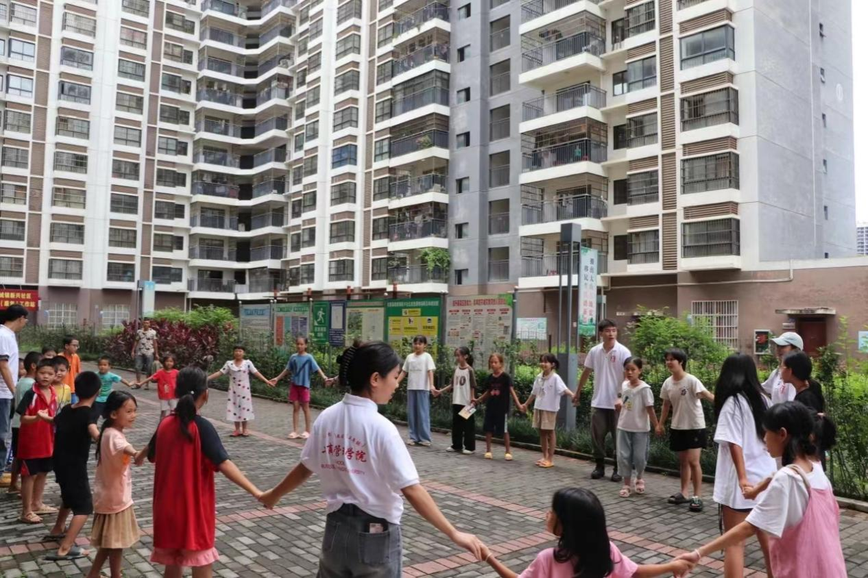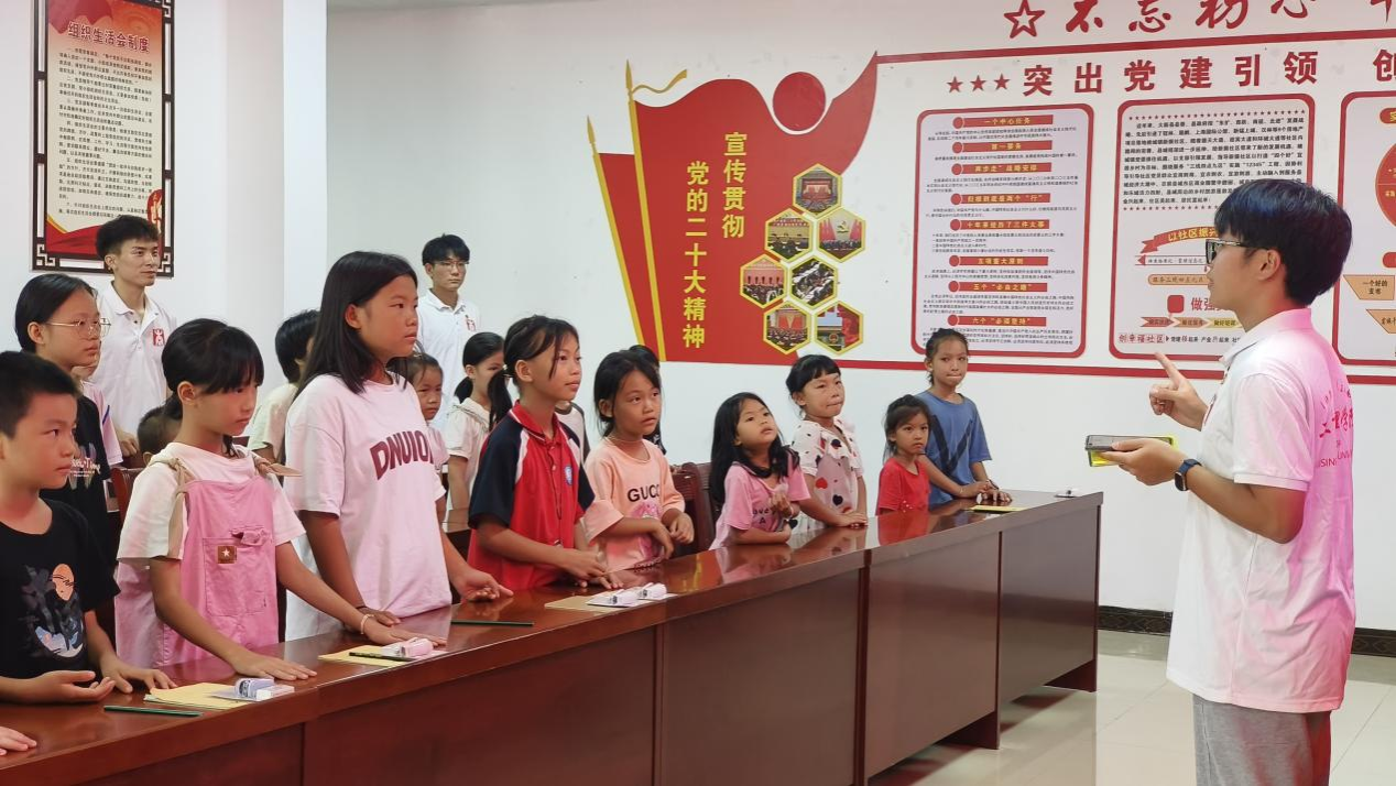 暑期社会实践团带着满满的爱心与责任,走进了大新县易地搬迁扶贫小区——星光和乐城,开展了一场以“童心筑梦,心系边疆”为主题的关爱行动。