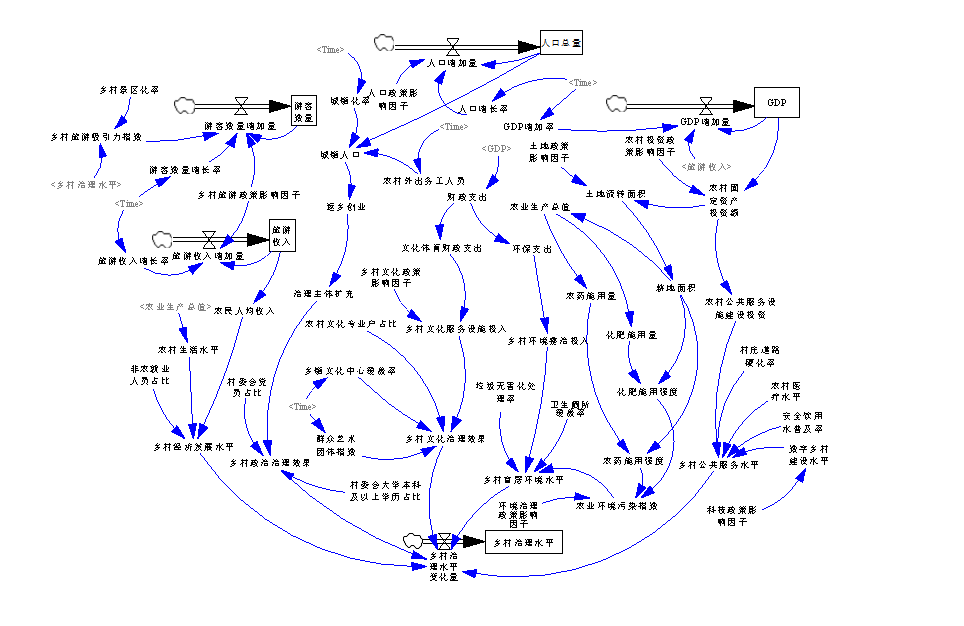 文章从城乡要素流动视角,基于“驱动–状态–响应”的分析框架,构建了旅游驱动乡村治理的模型,借助Versim系统动力学建模软件揭示旅游驱动乡村治理的复杂内在机制。文章初步搭建了旅游驱动乡村治理的系统动力学研究框架,完善、深化了对乡村旅游通过城乡要素流动驱动乡村治理内在作用机制的研究,为乡村旅游驱动乡村治理实践提供了路径参考。