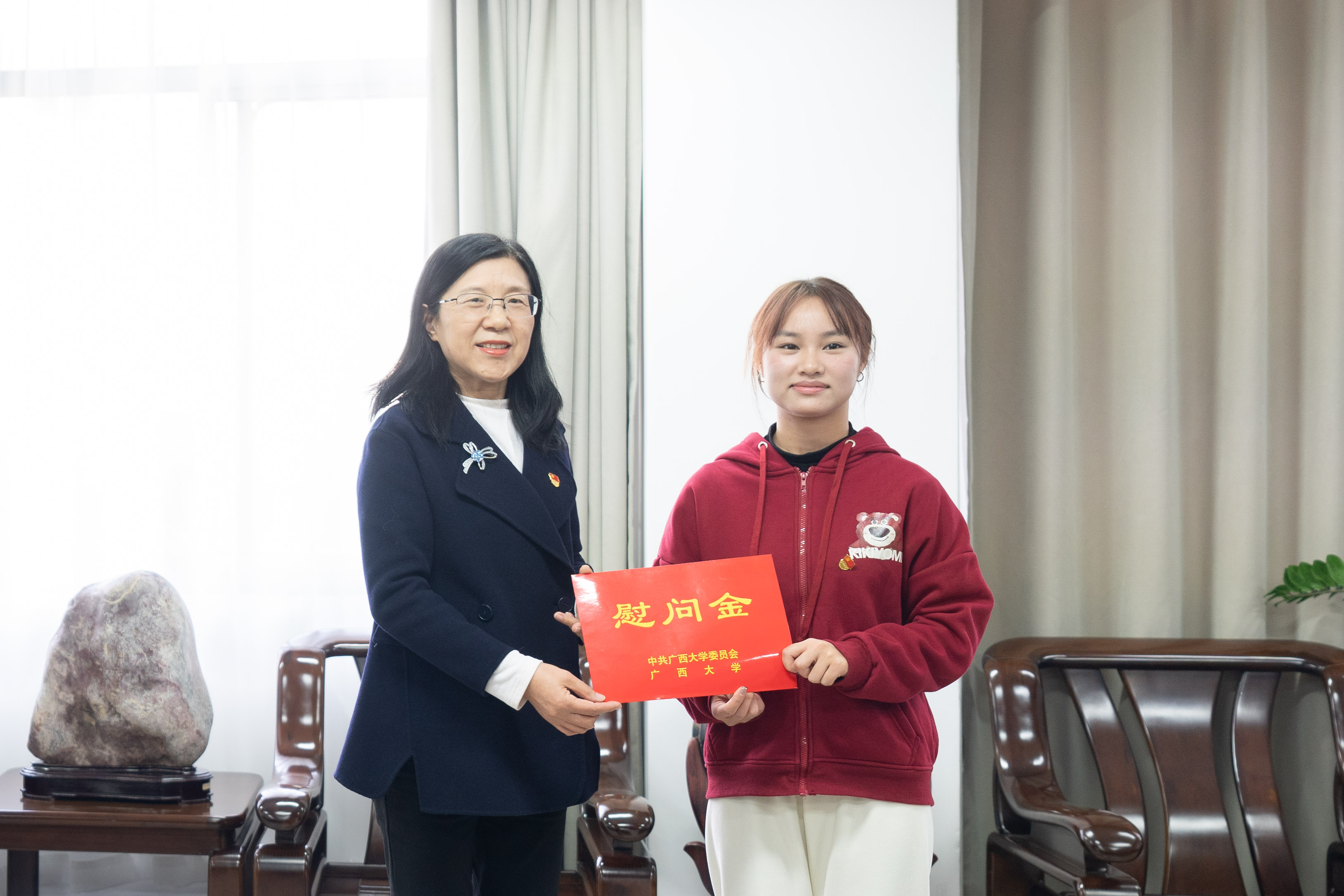 金顺南代表学校党委向韦尹洁送上慰问金