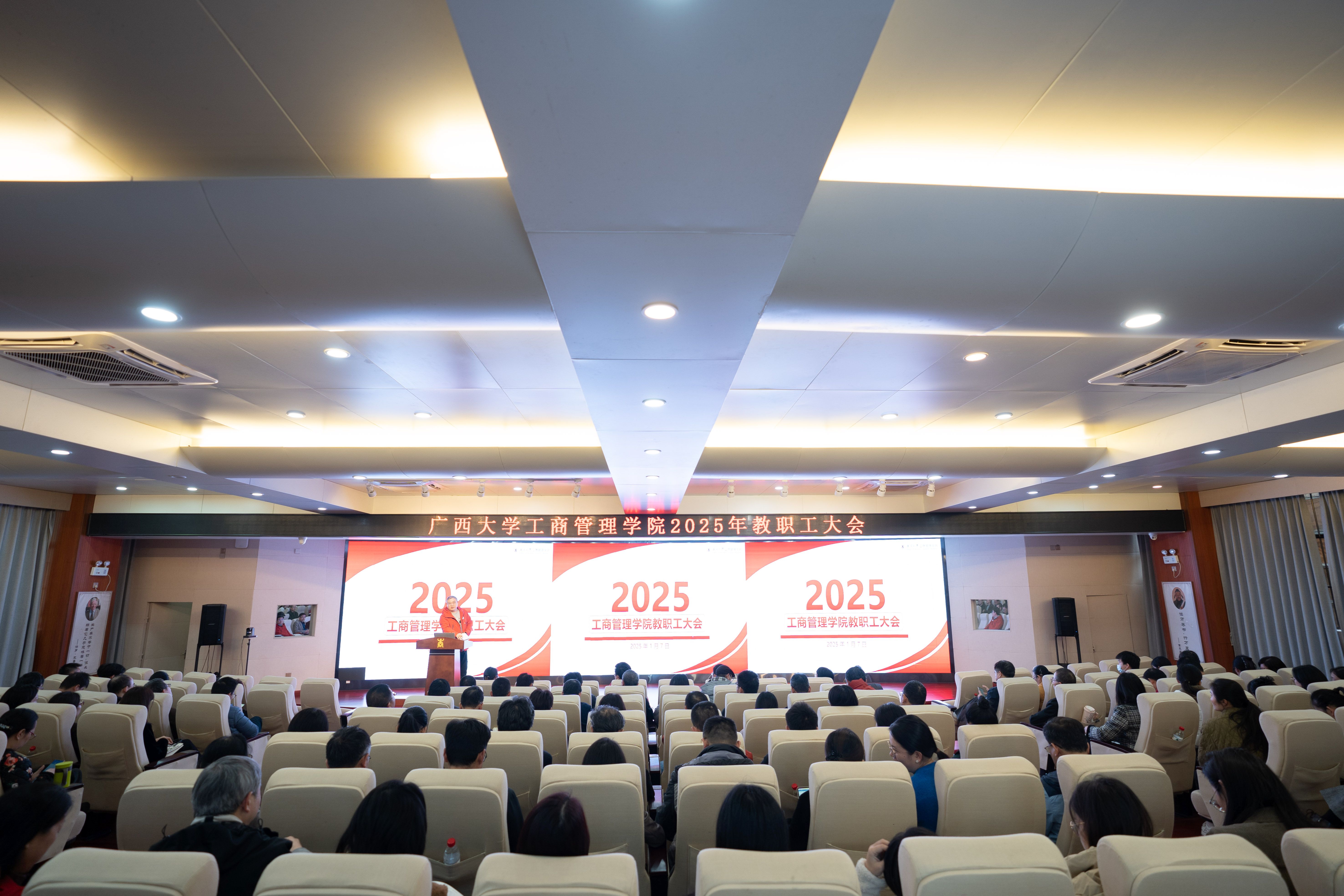 在学院128报告厅召开2025年教职工大会,就学院2024年发展情况进行盘点总结,并对2025年重点工作进行安排部署。学院党委书记黄晋、院长朱帮助、党委副书记肖克宁,副院长朱少英、廖东红,院长助理韦铁出席会议,全体教职工参加了会议。会议由朱帮助院长主持。