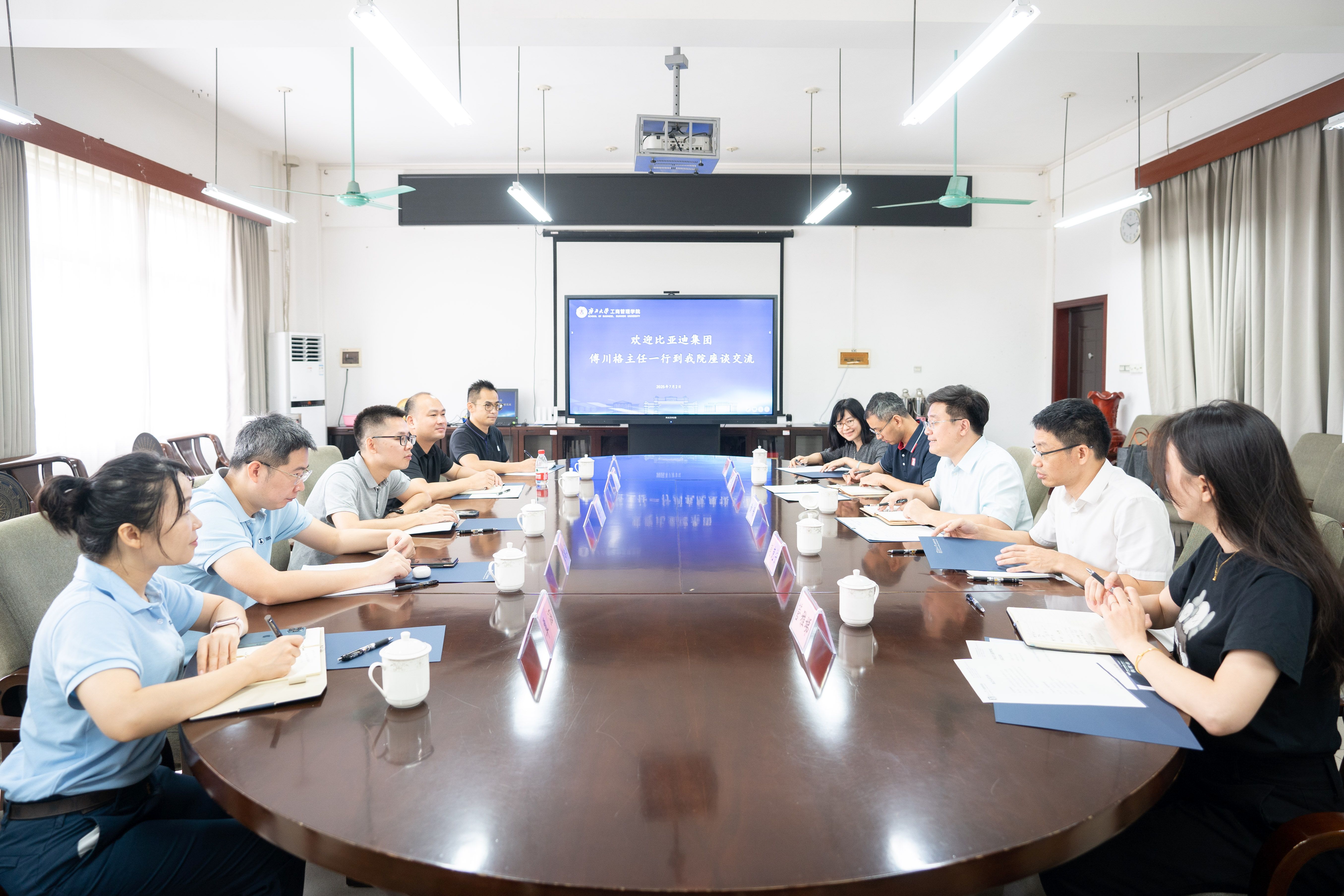 黄晋对比亚迪集团代表的到来表示热烈欢迎,期待与比亚迪集团在构建就业指导体系、建设实习实训基地、开发一流课程、构建教学案例库以及指导学科竞赛等领域深化合作,共同为区域经济社会的高质量发展贡献力量。