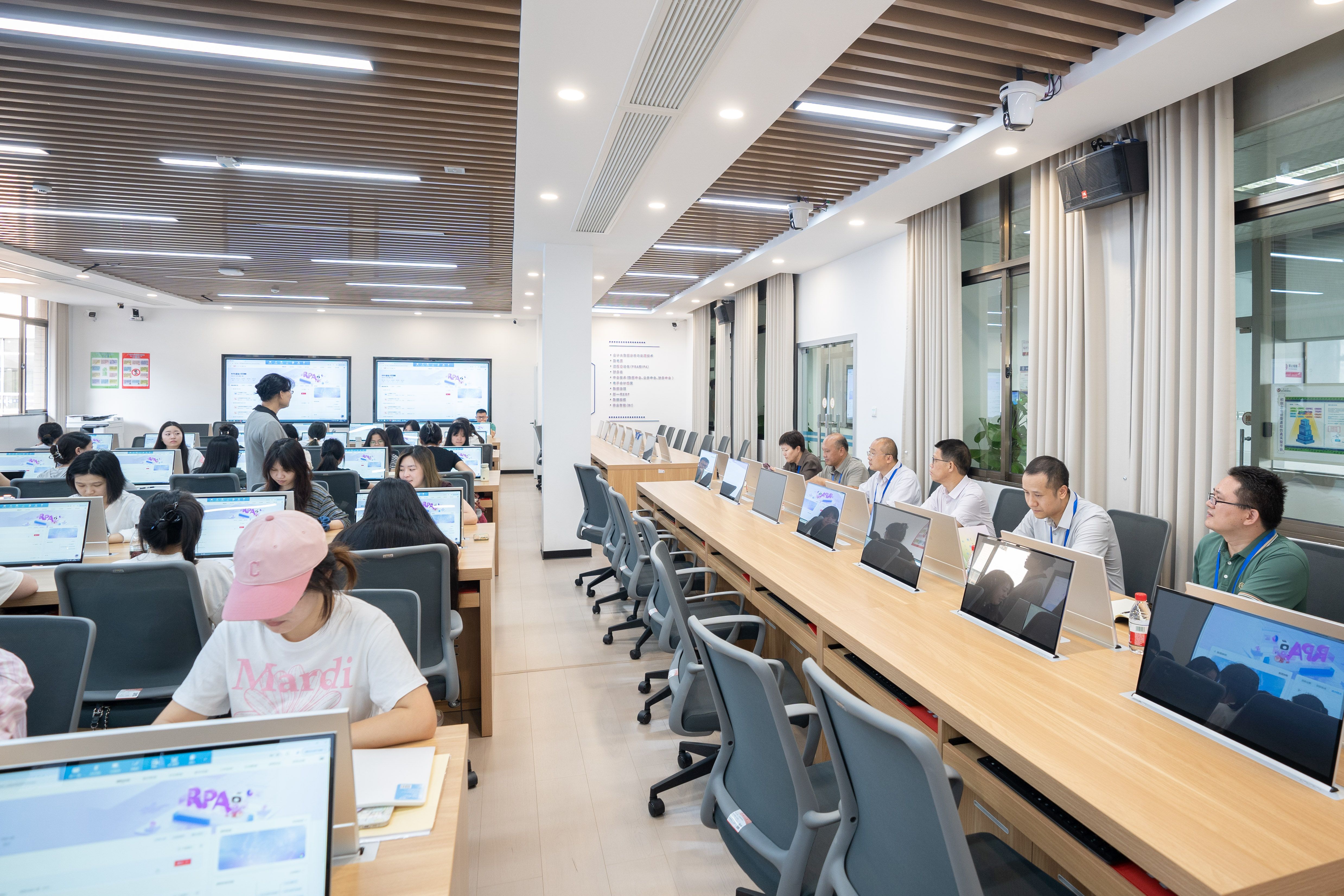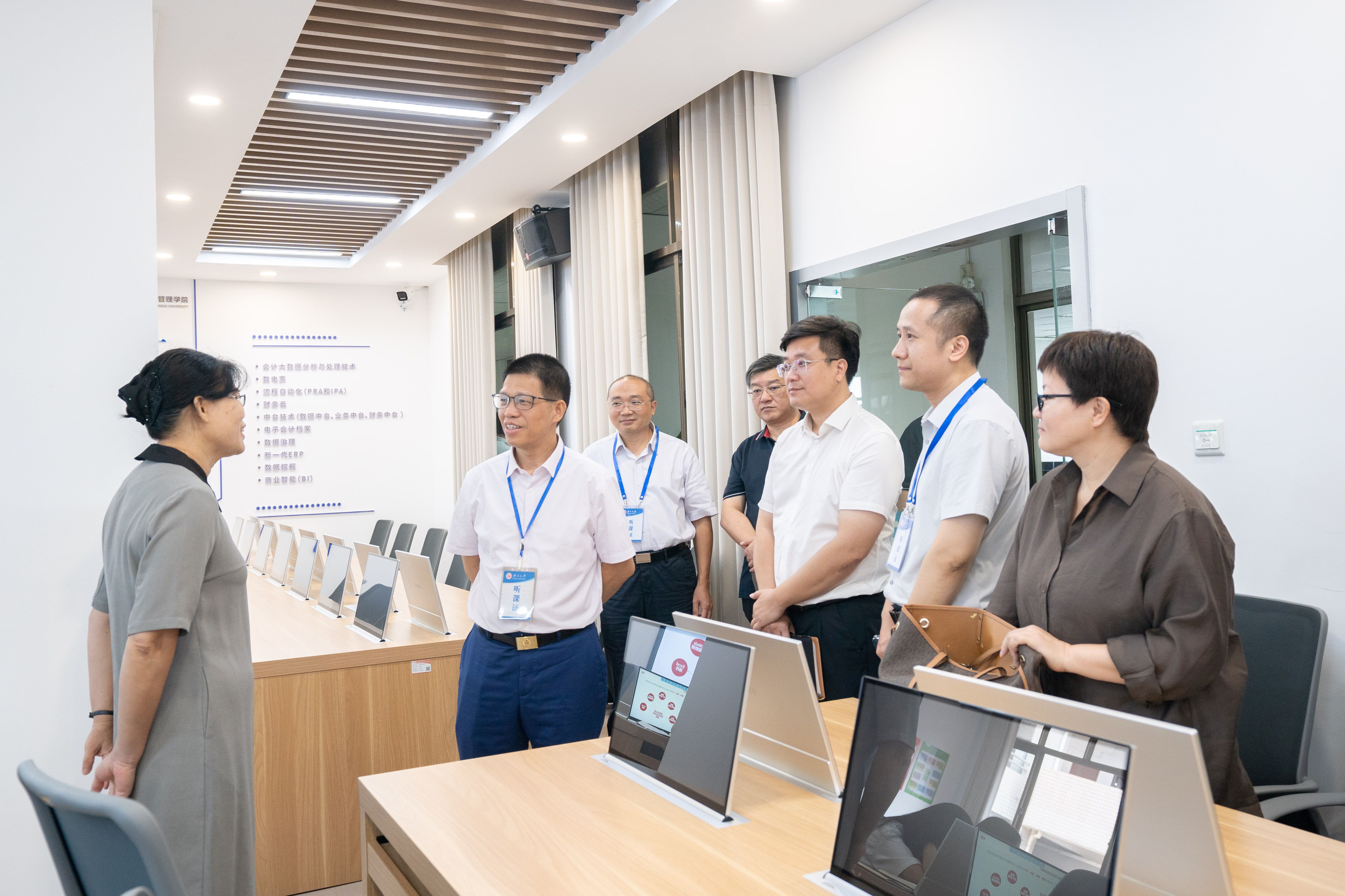 座谈会前,检查组到学院515教室随堂听课。检查组成员认真聆听教师授课,关注教师的教学方法、教学内容以及师生互动情况,并不时记录教学过程中的亮点和不足。课后,宁旭初与授课教师面对面交流,提出了建设性的意见和建议。