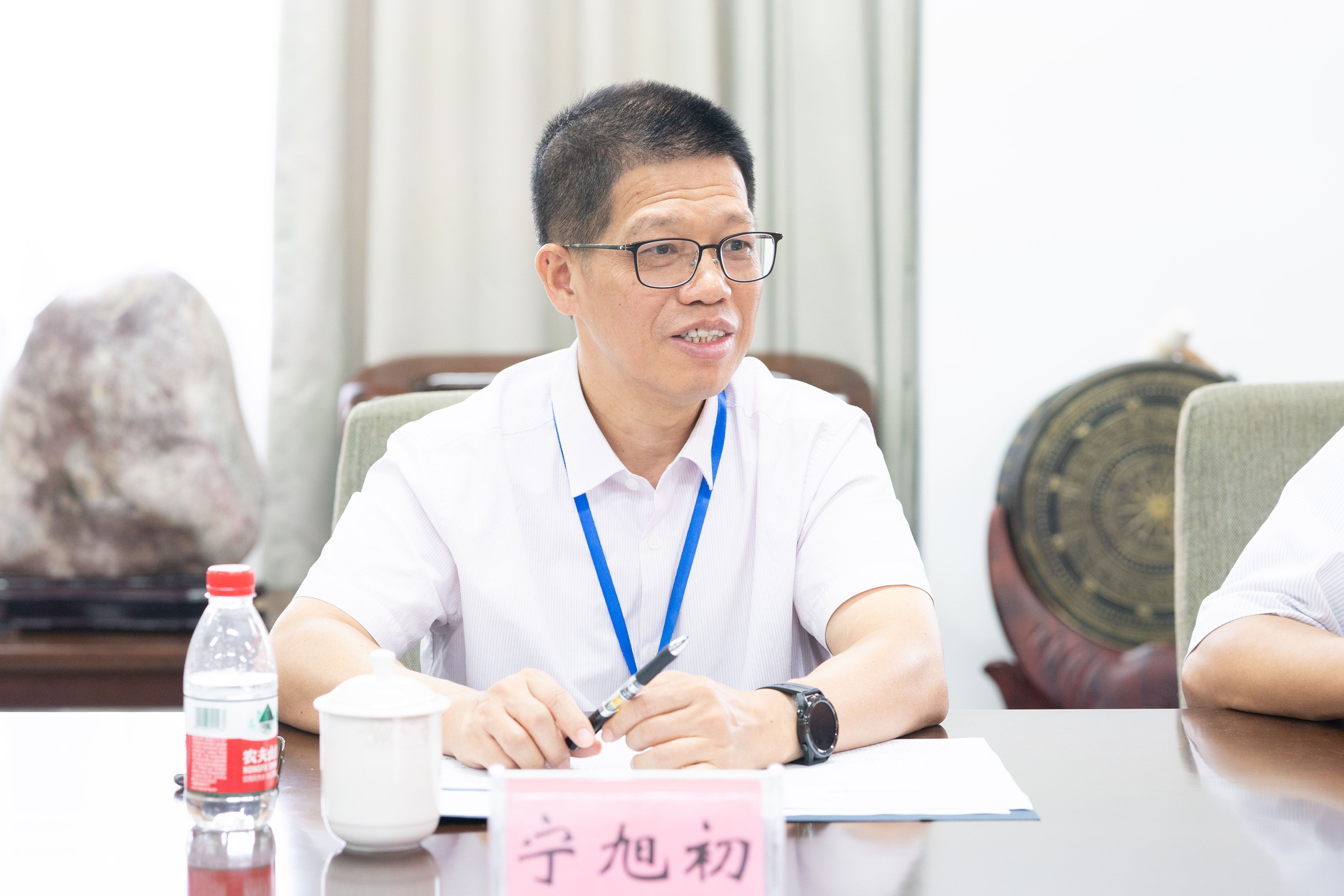 宁旭初与授课教师面对面交流