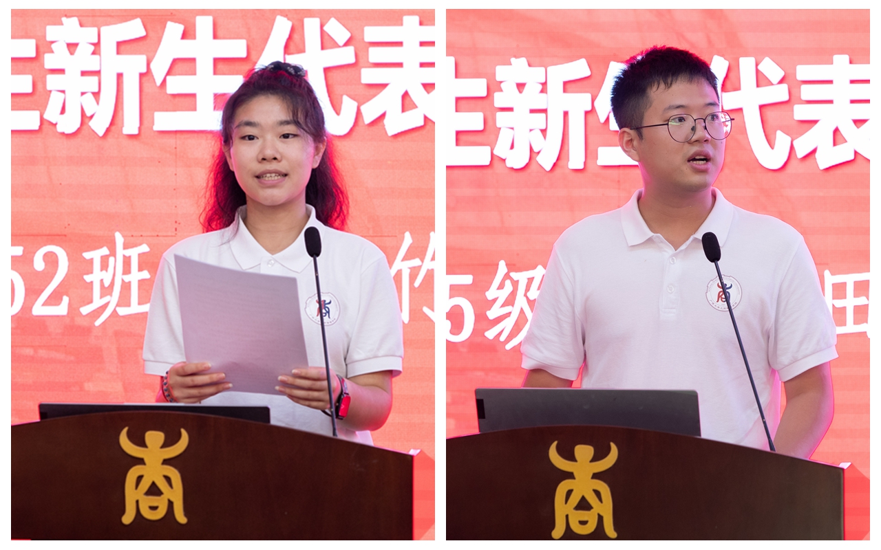 会计学252班王卿竹、2025级工商管理学硕田皓哲代表新生发言。王卿竹分享了“勤学”“锤炼”“立志”三个关键词,表示将涵养诚信的品格、培养务实的作风、锻造坚韧的意志,力争成为有温度、有担当、有格局的时代青年。田皓哲基于深厚的归属感和对学术的向往,选择继续留在av片