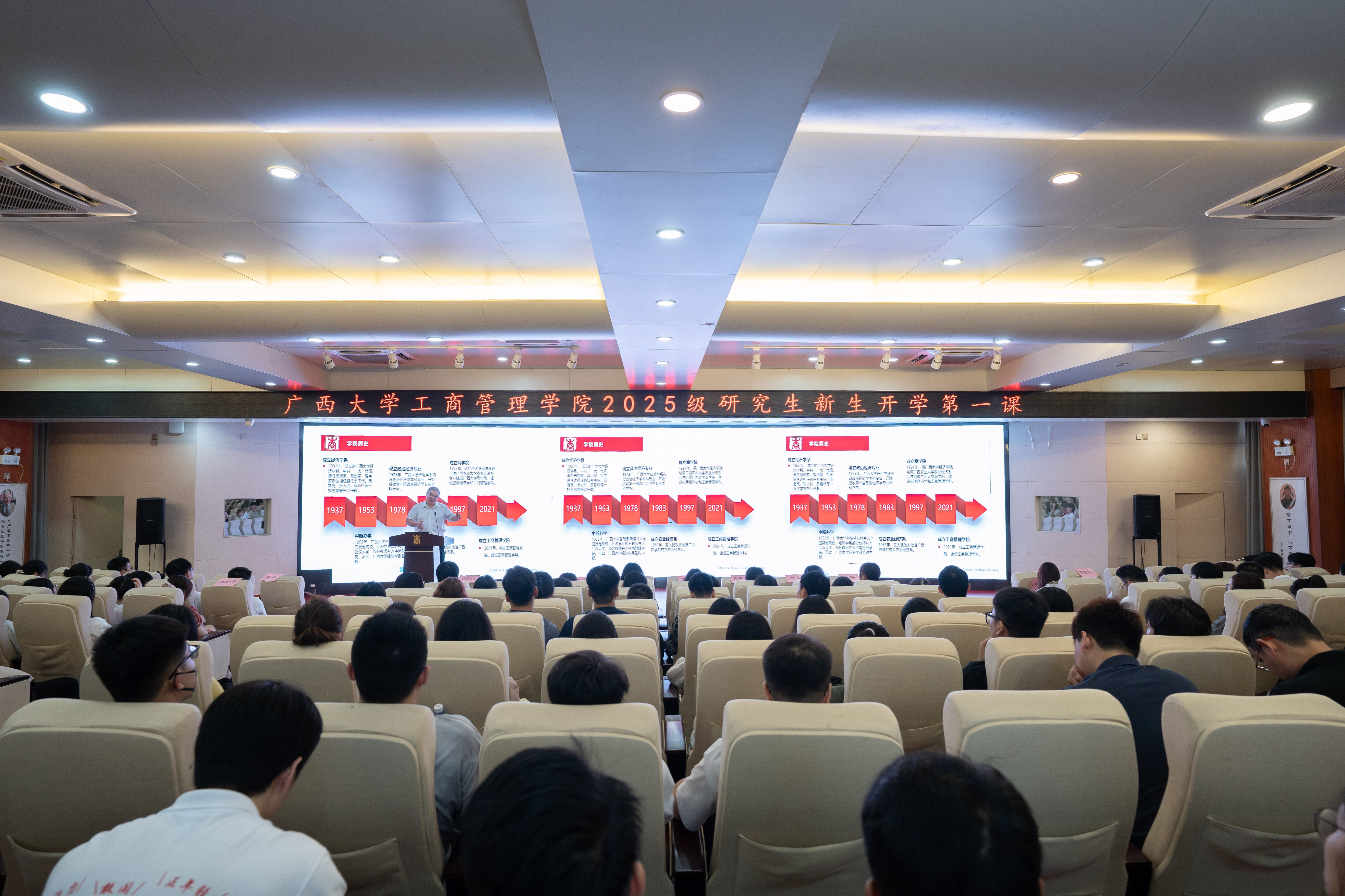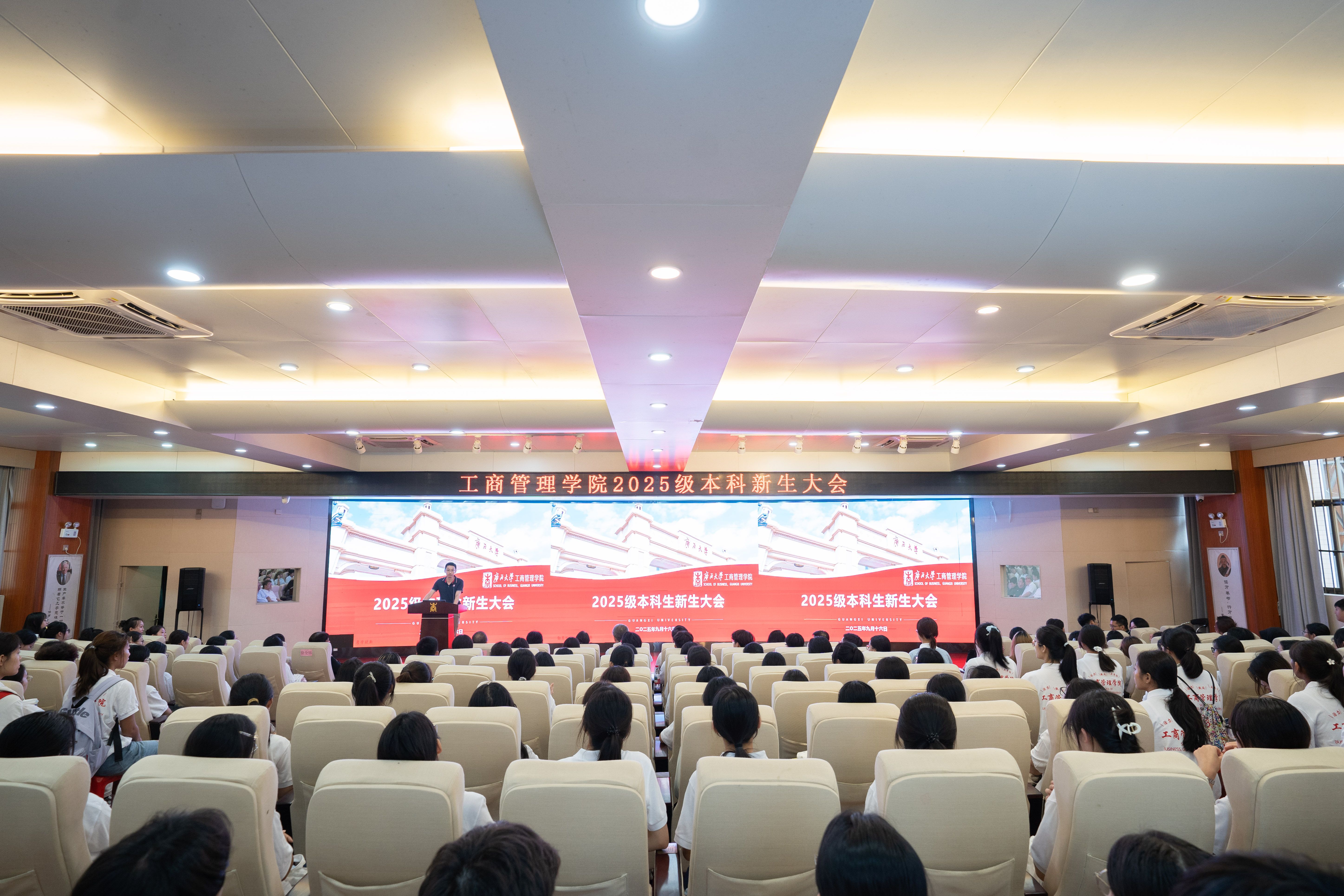 在学院128报告厅分别举行了2025级本科生新生和2025级研究生新生大会。学院党委书记黄晋、院长朱帮助,副院长朱少英、申韬、廖东红、韦铁,院长助理蒋侃出席大会,相关部门负责人以及各系主任、各新生班级班主任、研究生管理中心、学工组老师和2025级全体新生参加了大会,学院党委副书记肖克宁主持大会。