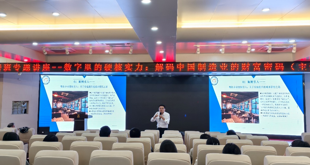 曹向以《数字里的硬核实力:解码中国制造业的“财富”密码》为题,通过生动的语言、深入浅出的讲解方式,带领学生们跳出宏大叙事,潜入数据的深海。他通过拆解龙头企业的财报,向大家展示了这些企业如何通过极致的成本控制、精准的研发投入以及智慧的资本运作,构建起真正的竞争优势。曹向指出,中国制造的胜利,不仅仅是规模的胜利,更是效率、创新与战略财务管理的胜利。讲座为同学们提供了一套从财报数据洞察行业趋势的分析方法,帮助大家学会如何透过财务报表的数字,捕捉到企业经营的脉搏和行业发展的走向。