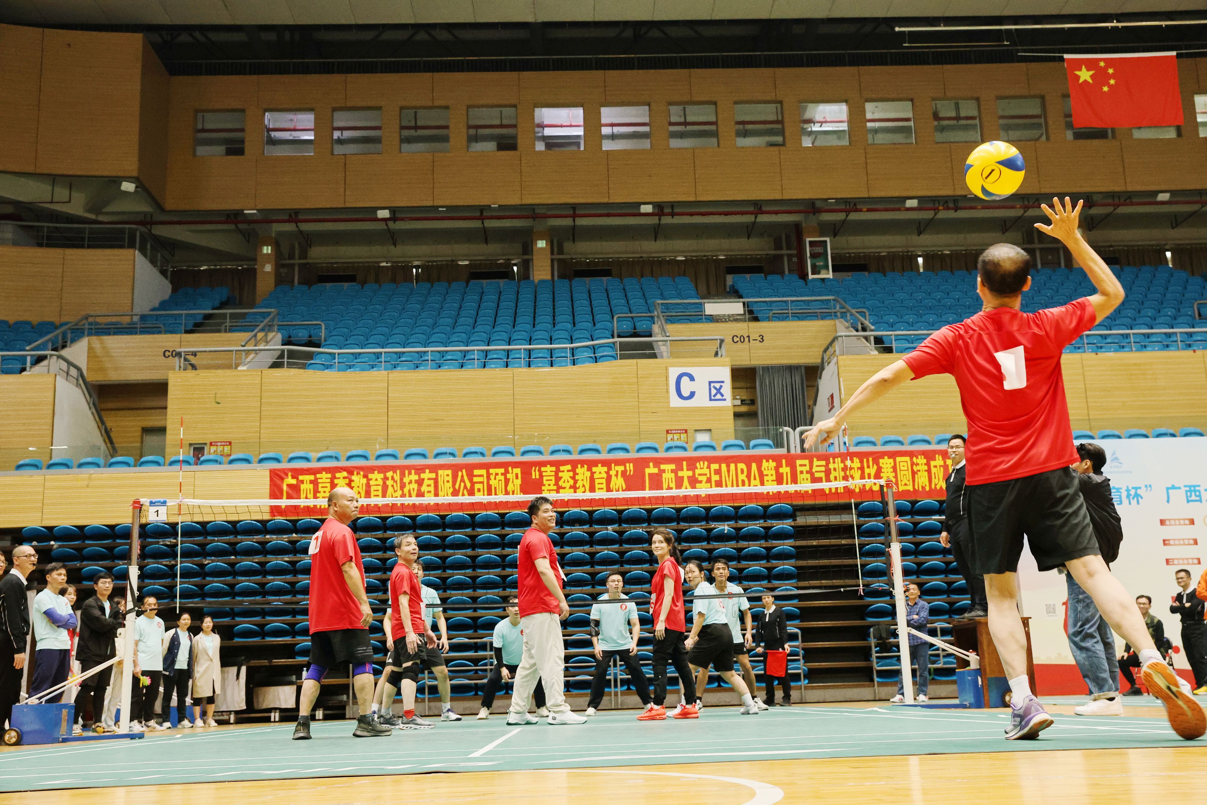 党委书记黄晋、党委副书记肖克宁、EMBA教育中心主任宁雪莲,广西嘉季教育科技有限公司董事长、EMBA第五届同学会执行会长庞勤,秘书长陈轲等出席开幕式。14支班级代表队、150余位校友齐聚赛场,以球会友、共展风采。