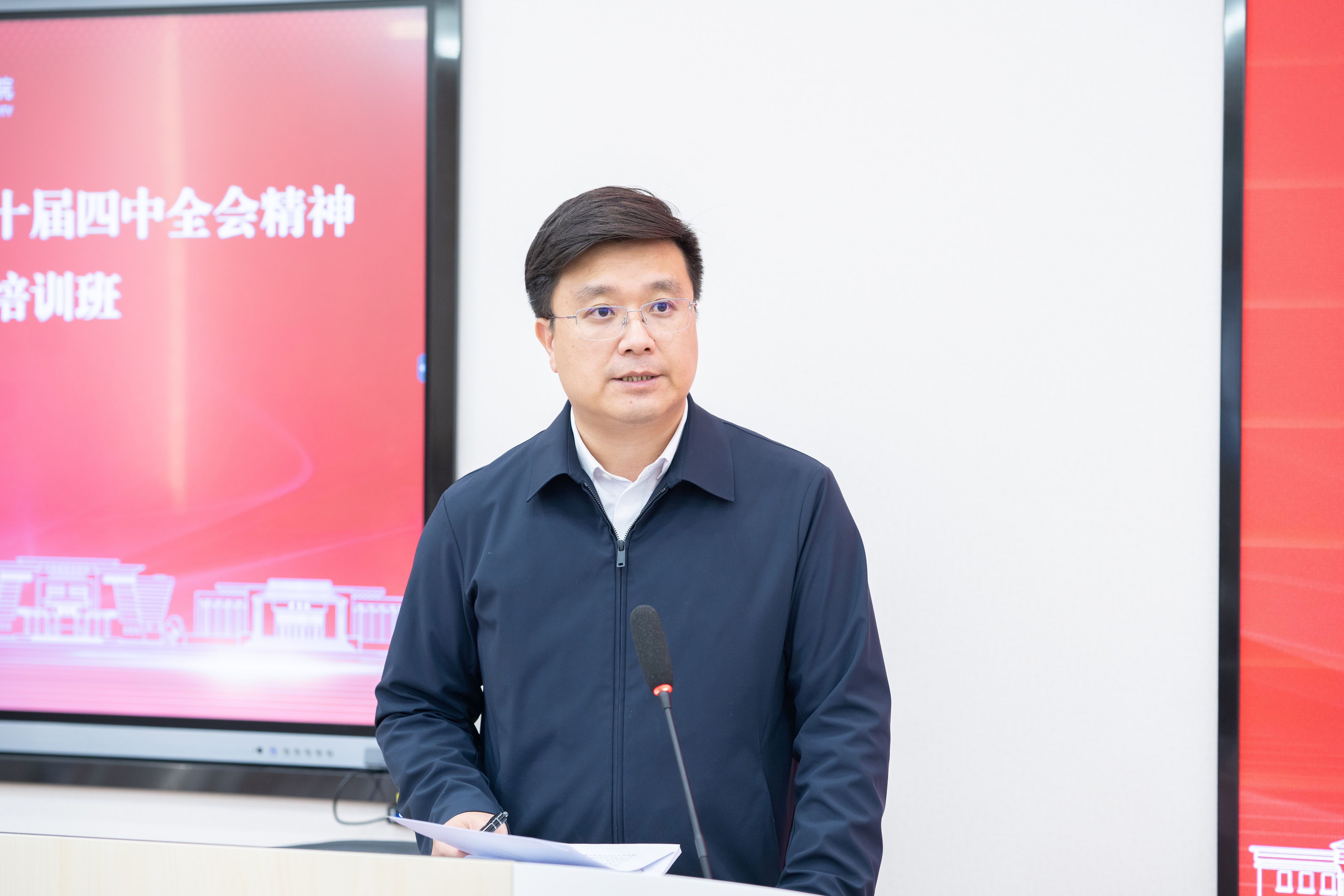 在开班仪式上,党委书记黄晋指出,本次专题培训班是学院深入学习贯彻党的二十届四中全会精神的重要举措,旨在进一步提升党务工作者的政治素养、理论水平和业务能力,为学院党建工作高质量发展奠定坚实基础。他强调,全体参训学员要深刻认识学习贯彻党的二十届四中全会精神的重大意义,切实把思想和行动统一到党中央的决策部署上来;要端正学习态度,遵守培训纪律,深入思考研讨,力求学有所获、学以致用;要坚持学用结合、知行合一,把学习成果转化为推动支部工作标准化规范化建设、提升党建工作质量的具体行动,以高质量党建引领学院各项事业高质量发展。