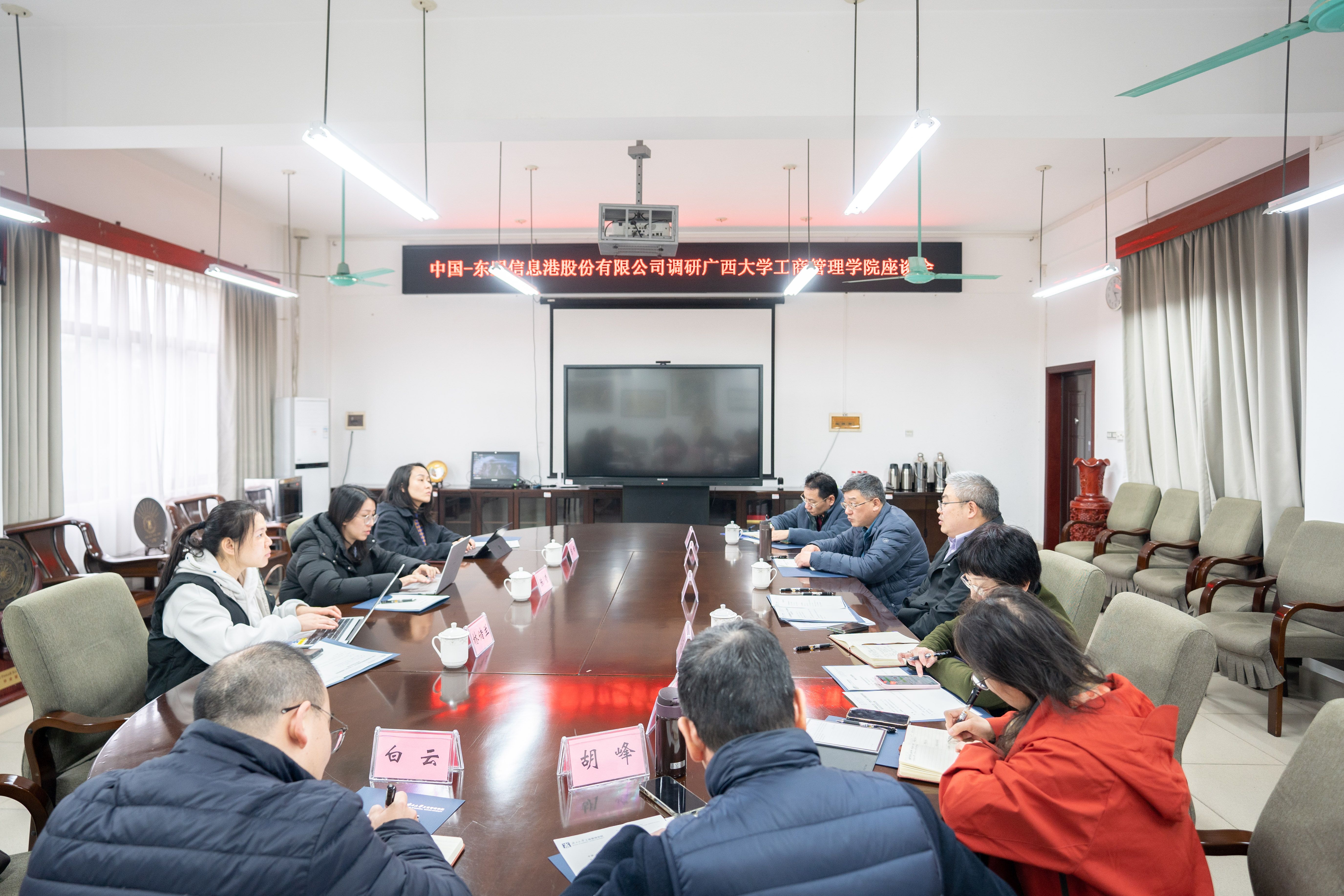 的基本情况,他表示,学院始终立足区域经济社会发展需求,积极探索校企合作的新路径,希望通过此次交流,与中国-东盟信息港股份有限公司在绿色能源经济、东盟华侨华商、人工智能管理等领域找到契合点,实现优势互补、共同发展。