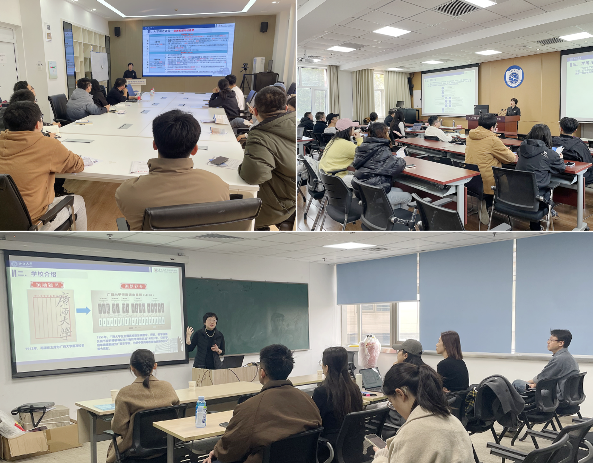 廖东红在中南大学商学院(左)、上海交通大学环境科学与工程学院(右)宣讲