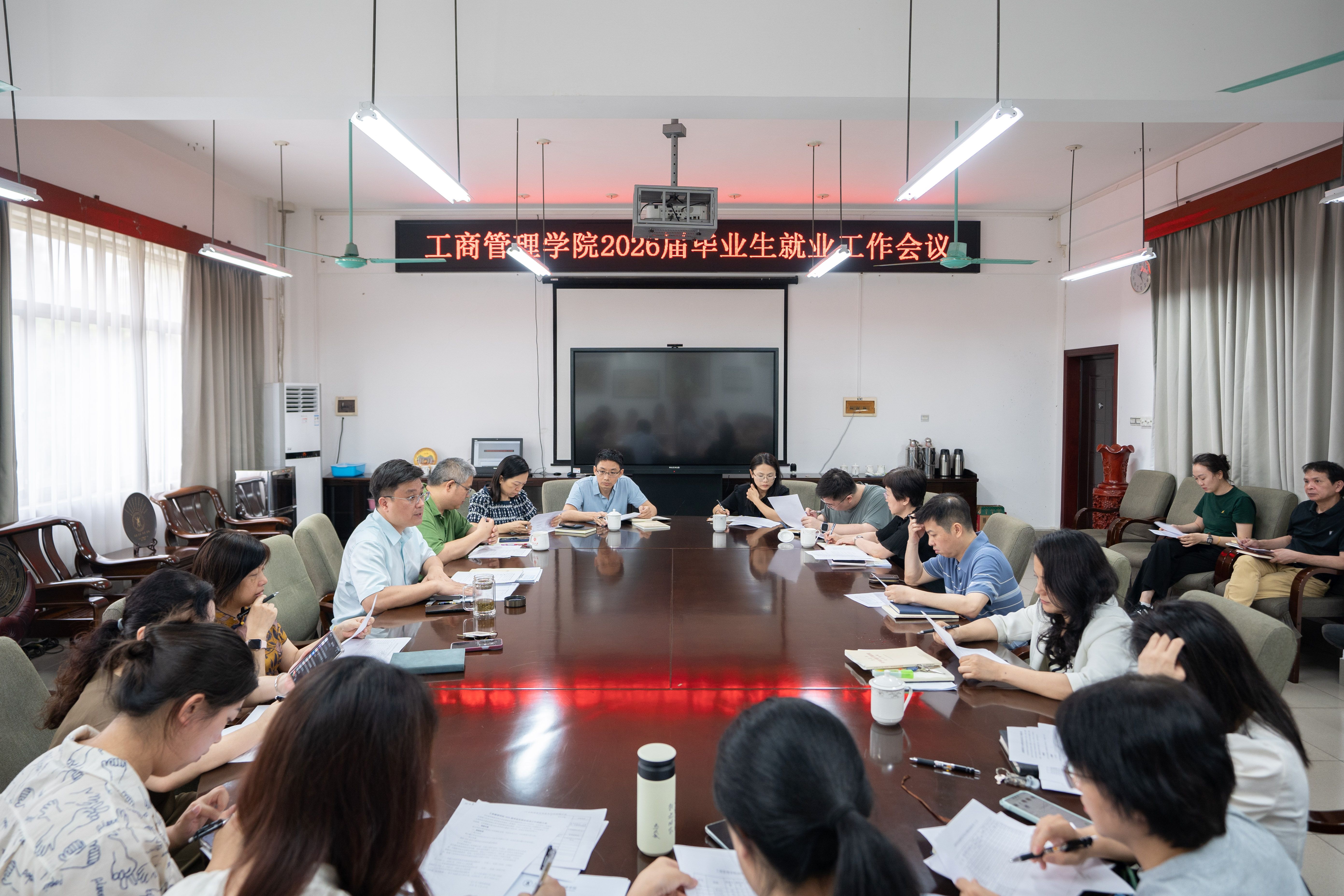 黄晋指出,就业是最基本的民生,是关系学院发展和学生未来的头等大事。全院上下要进一步提高政治站位,切实把思想和行动统一到学校党委的决策部署上来。一是高度重视毕业生就业工作。就业工作成效是人才培养质量的具体体现,直接关系学科发展、专业建设、学科评估及专业认证等,要深刻认识做好毕业生就业工作的极端重要性和紧迫性;二是拓宽就业渠道,全力在岗位供给上实现新突破。要深入推进“访企拓岗促就业”行动,充分发挥EMBA、MBA校友企业优势,聚焦服务广西制造业十大现代化支柱产业,努力为毕业生搭建更多高质量的就业平台;三是精准开展就业指导,着力在就业育人上展现新作为。各部门要密切配合,形成工作合力,针对不同专业、不同就业意向的学生,制定差异化的帮扶措施,谈活工作要做细,帮扶工作要做到位,育人工作要做得暖,切实提升就业服务温度与实效。