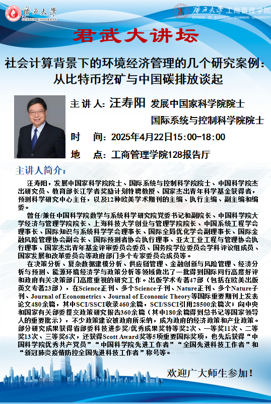 君武大讲坛|社会计算背景下的环境经济管理的几个研究案例:从比特币挖矿与中国碳排放谈起