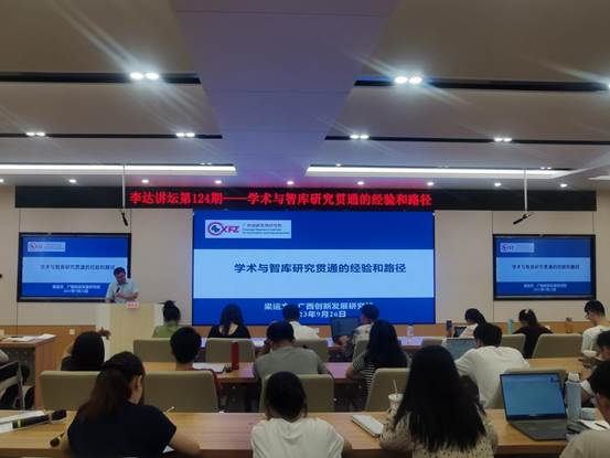 为促使师生们了解学科领域前沿知识,掌握最新研究动态,活跃学术研究氛围,提高对学术与智库研究贯通的理解和运用,9月26日下午,广西创新发展研究院执行院长、中国(广西)自由贸易试验区研究院副院长梁运文应邀到av片