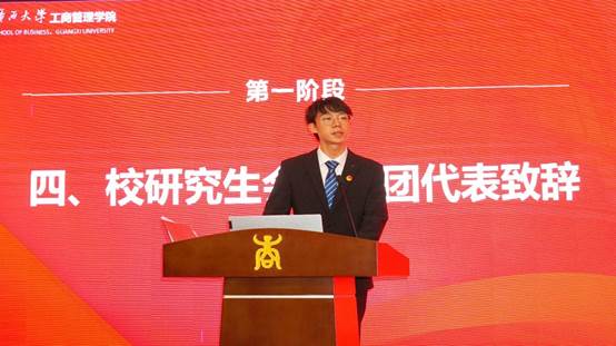第三届研究生主席团代表覃周瑶宣读倡议书,并向全院青年研究生发出如下倡议:一、强调政治意识,强化思想建设;二、坚持知行合一,扎根商科之学;三、勇于砥砺前行,彰显青春风采;四、恪守正道严守底线原则,锤炼品行修为。最后,她呼吁同学们行动起来,以“今日之我,胜昨日之我”的青春朝气,既怀抱梦想又脚踏实地,立志成为新时代好青年,为av片
