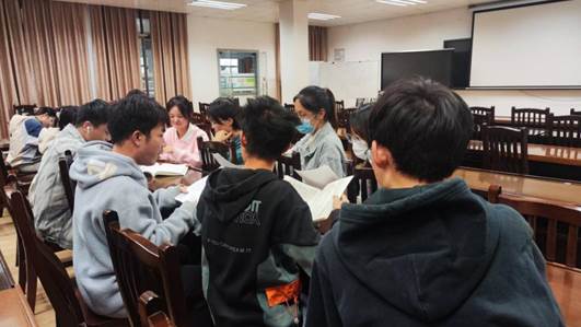 2023年11月14日,第五期预备党员党校班研究生第五党支部学员在学院509教室开展了“时常温书卷,习语暖人心”读书分享会。活动中,各位同学主动分享了读书心得,并结合自身经历谈了感受。