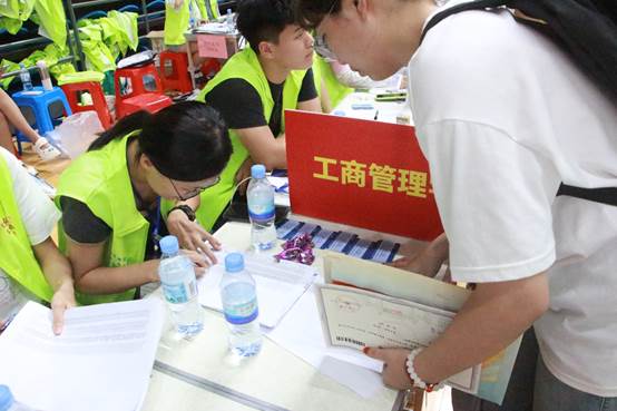 研究生迎新工作在学院办公楼完成,志愿者积极帮助新生报到注册、行李转运等工作。他们秉承“一对一志愿服务”的理念,认责负责地把新生带到学院相应教室报到处进行注册,然后帮助新生们将一件又一件的行李物品搬运至宿舍。拉箱子、提水桶、拎包,志愿者凭借着坚定的责任感,认真的服务精神,接待好每一位研究生新生。