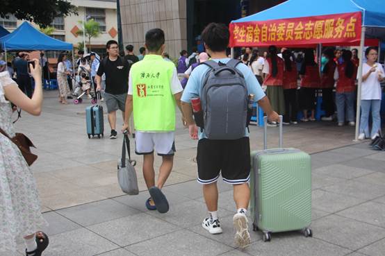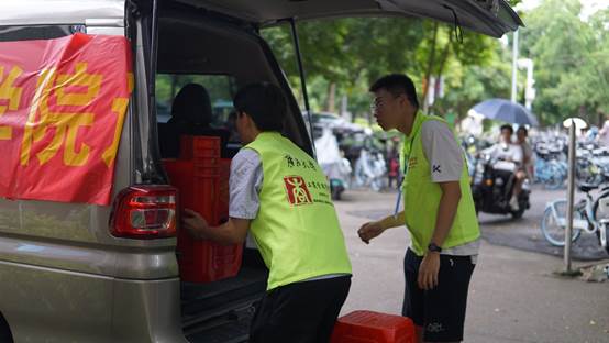 迎来了八百多位新生以及他们的家长,为帮助行李较多的学子安全便捷的到达宿舍,学院特地安排两辆专用车在学院门前守候,来回搬运行李,只为向商管新生们提供最贴心的帮助。