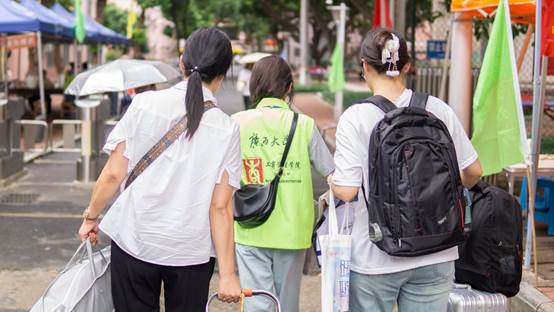 师生们早已身上“绿马甲”志愿服,翘首以盼,给新生们以家人般的关怀,尽显av片