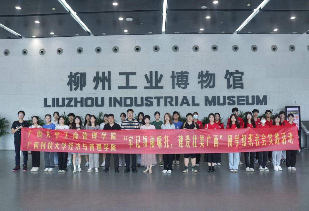 暑期实践团与广西科技大学经济与管理学院一同开展“喜迎二十大、永远跟党走、奋斗新征程”主题团日活动,并前往柳州市工业博物馆进行参观交流与学习。