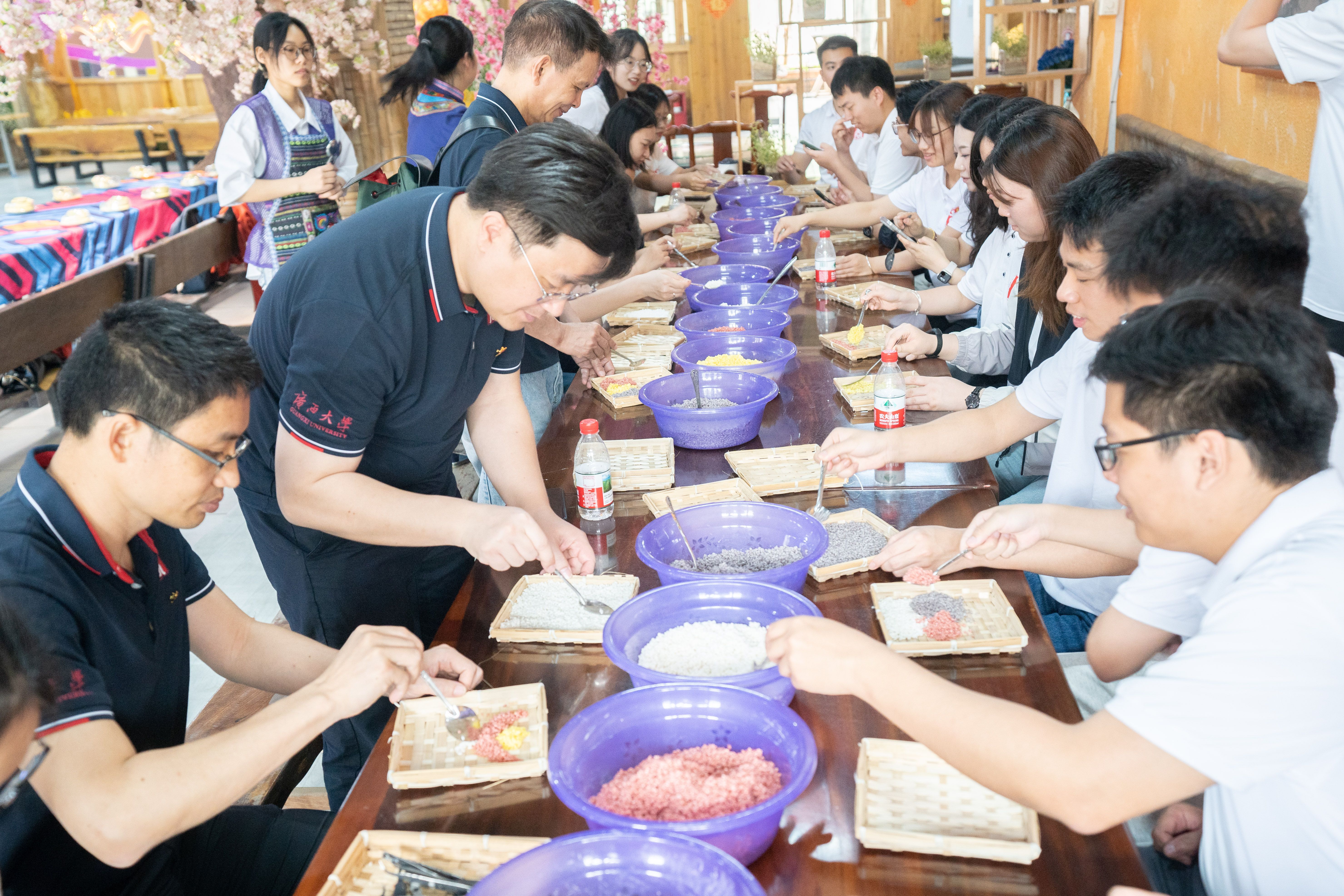 组织师生前往武鸣五彩壮乡文化产业园,开展了一场别开生面的广西三月三民族文化研学活动。学院党委书记黄晋、副书记肖克宁与师生们一同参与活动,深入体验民俗风情,传承民族文化,铸牢中华民族共同体意识。