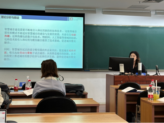 学生杨镕博进行了题为“智慧城市能否推动城市数实融合?——基于“准自然实验”的证据”的报告。随着技术进步与经济发展,继农业经济与工业经济之后,人类迎来了新的经济形态——数字经济。在数据成为关键生产要素之后,数字经济与实体经济深度融合被广泛关注,党的二十大报告明确提出“加快发展数字经济,促进数字经济和实体经济深度融合,打造具有国际竞争力的数字产业集群”。另一方面,随着数字经济快速发展,作为一种新型城市发展模式,智慧城市迅速在世界各国掀起建设浪潮。杨镕博的研究指出智慧城市建设对城市数实融合程度具有显著的促进作用,其作用机制是通过创新效应、人才集聚效应与对外开放效应而实现;同时智慧城市对城市数实融合的促进作用存在城市区域异质性与城市规模异质性。这篇文章拓宽了现有研究,对于数字经济与实体经济深度融合和智慧城市建设具有一定参考价值,也对中国式现代化和高质量发展目标的实现具有借鉴意义。
