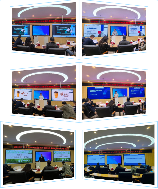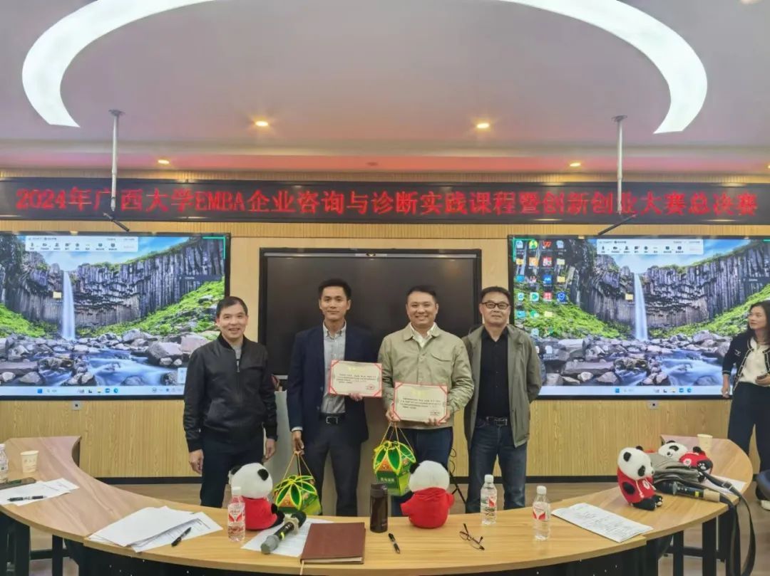 唐玉生教授、胡峰副教授、王玻副教授、广西中烟天成投资管理有限责任公司董事长龙毅、广西田园生化股份有限公司子公司总经理黄兵五位评委受邀出席总决赛,总决赛在抽签之后正式拉开帷幕。