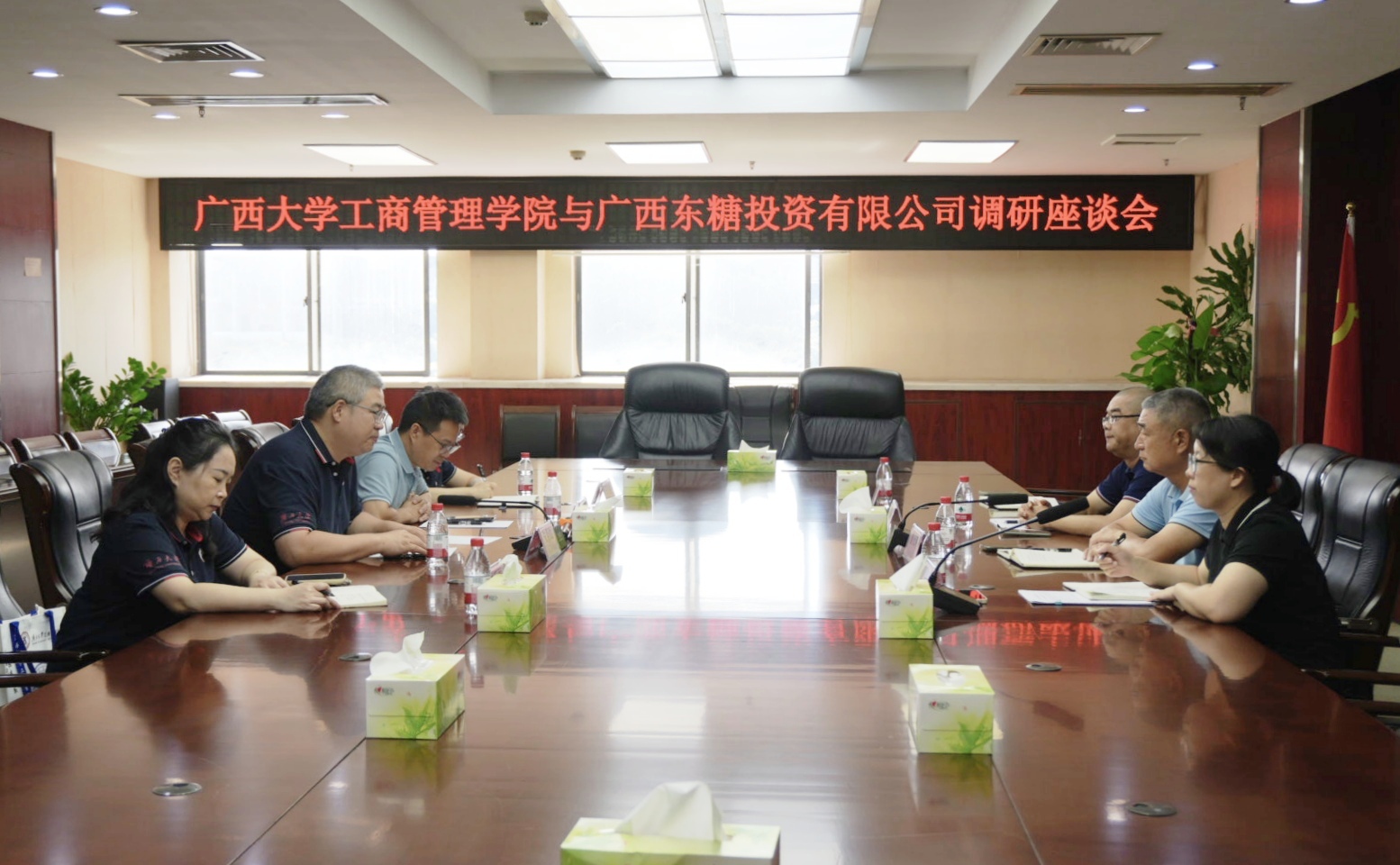 院长朱帮助率校友工作与政企服务办公室主任覃朝勇、刘巧丽与韦丹静老师一行,赴广西东糖投资有限公司开展业务交流与高管培训需求调研。东糖集团副总裁曹长岭、人力部部长卢伟东、副部长唐玮等参与座谈,双方围绕糖业战略布局、高管能力提升与校企合作路径展开深度对话。