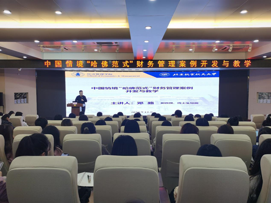 进行学术交流。下午三点,邓路教授在商学院128报告厅进行了主题为“中国情境‘哈佛范式’财务管理案例开发与教学”的学术报告。报告由商学院财务与会计系副主任唐妤老师主持。