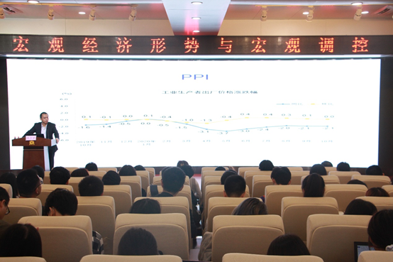 进行学术交流。下午3点,陈彦斌教授在商学院128报告厅进行了主题为“宏观经济形势与宏观调控”的学术报告。报告由商学院副院长刘民坤教授主持。