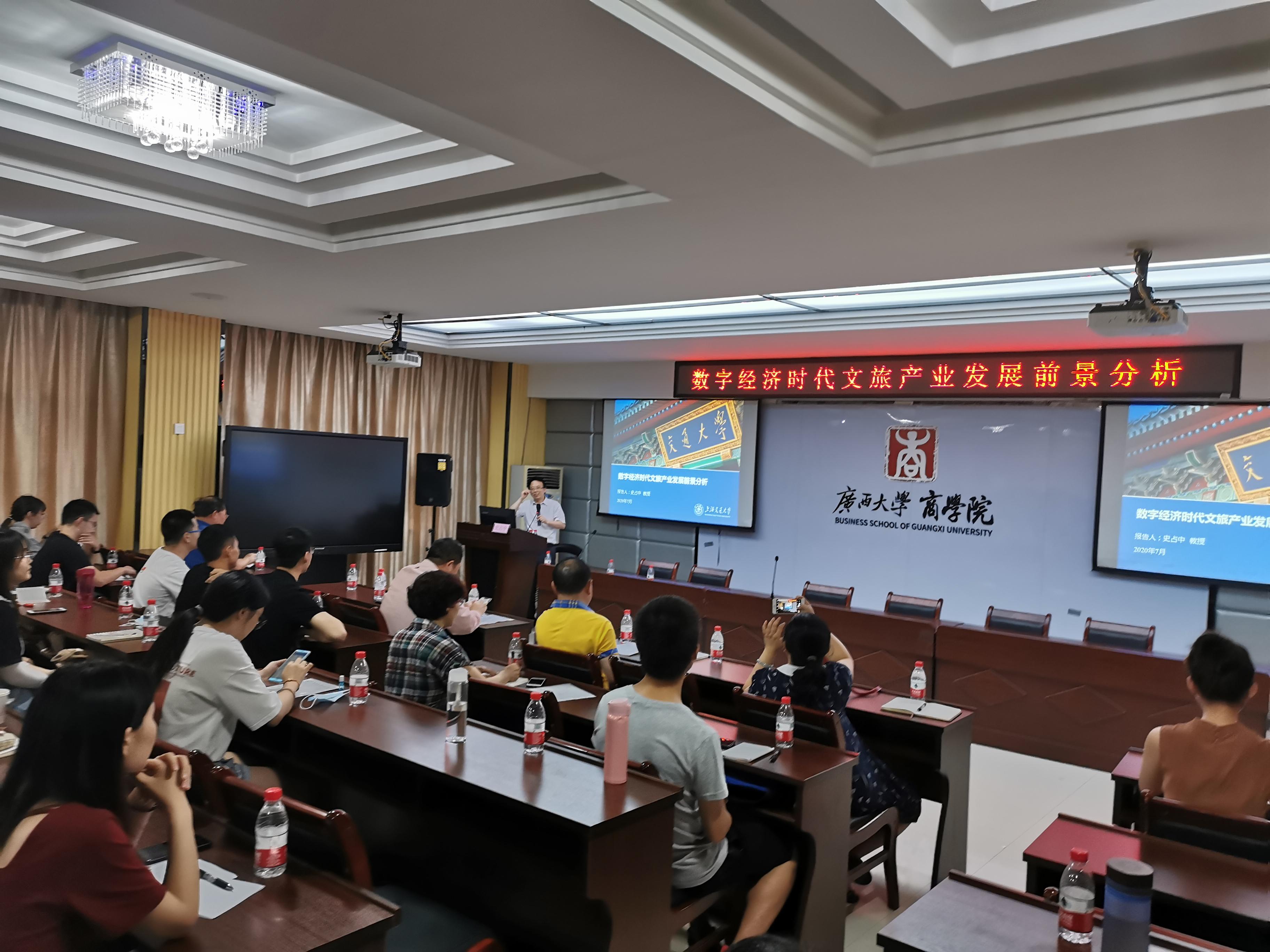 进行学术交流。上午10点30分,史占中教授在商学院124报告厅进行了主题为“数字经济时代文旅产业发展前景分析”的学术报告。报告由商学院副院长刘民坤教授主持。