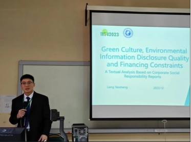 其中梁耀升同学参会的论文题目为:Green Culture, Environmental Information Disclosure Quality and Financing Constraints: A Textual Analysis Based on Corporate Social Responsibility Reports(绿色文化、环境信息披露质量和融资约束——基于社会责任报告的文本分析)。该论文从文化的非正式制度视角丰富了融资约束的影响因素研究,同时也为完善绿色文化建设和拓宽av片新境界提供经验证据。